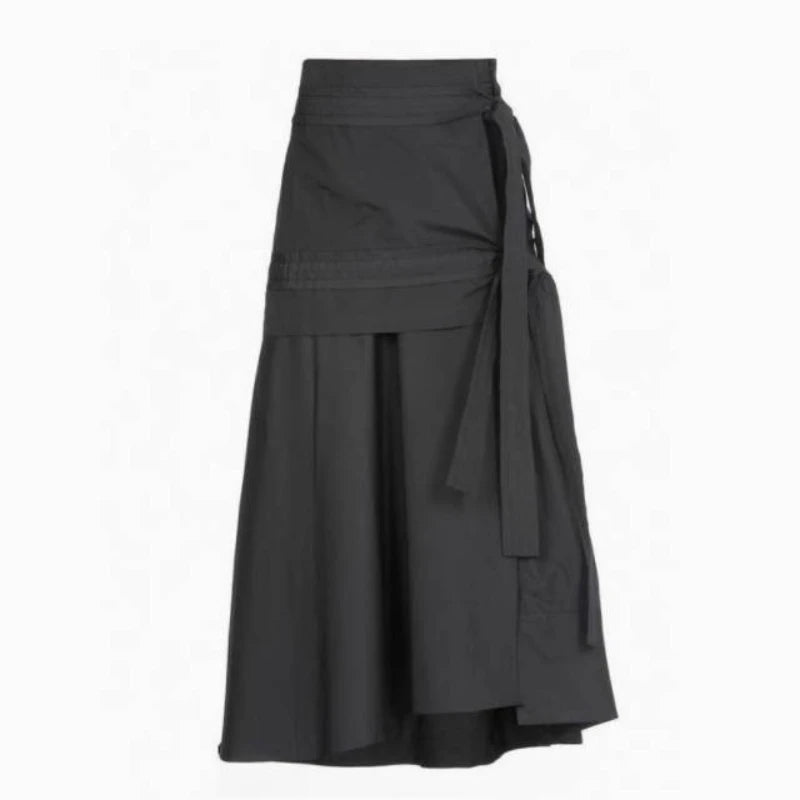 Lunivop Preppy Style Gray Long Skirts Women Japanese Style Harajuku Midi Skirt Vintage Asymmetrical Casual Aesthetic Skirts