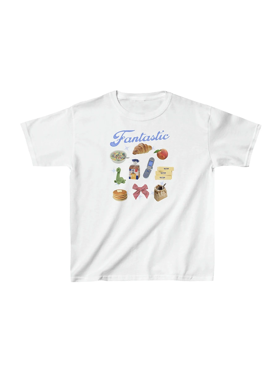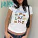 Lunivop Preppy Vintage Aesthetic Teen Girl T-shirt Cute Graphic Print Crew Neck Crop Top Women Y2k Short Sleeve Baby Tees 90s Streetwear