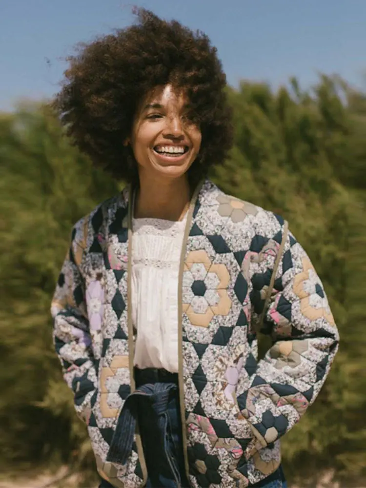 Model Number: Print Flower Quilted Patchwork Women Cotton Coat