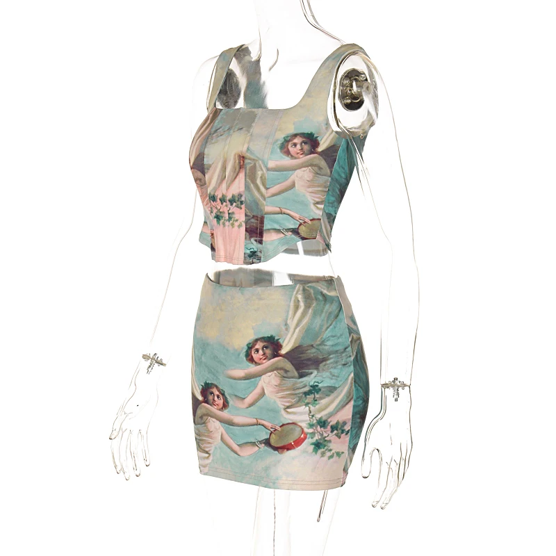 Lunivop Printing 2 Piece Skirt Matching Sets Crop Top Slim Summer Sexy Streetwear Party Club Event Vacation For Women Clothes