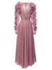 Lunivop Printing 3D Flowers Women's Dresses V Neck Long Sleeve High Waist Loose Elegant Dress Female Autumn 2025 New