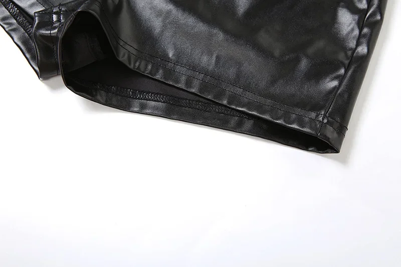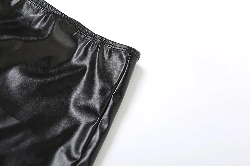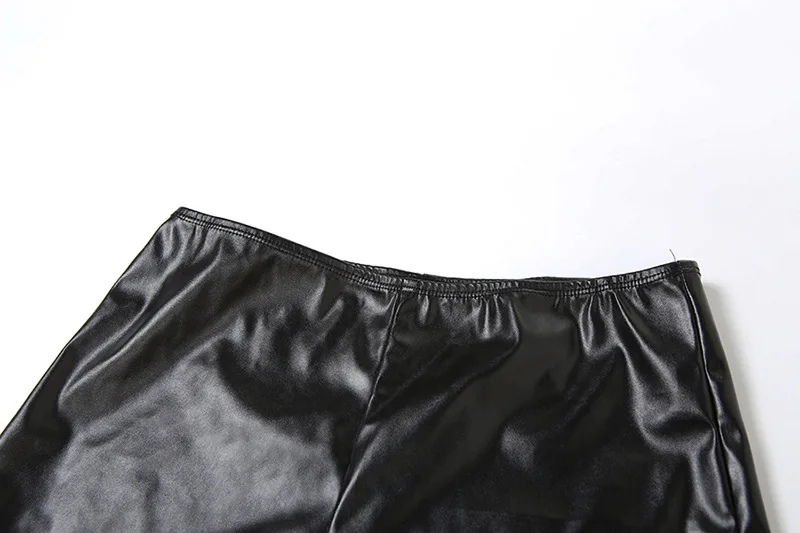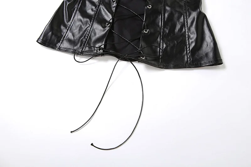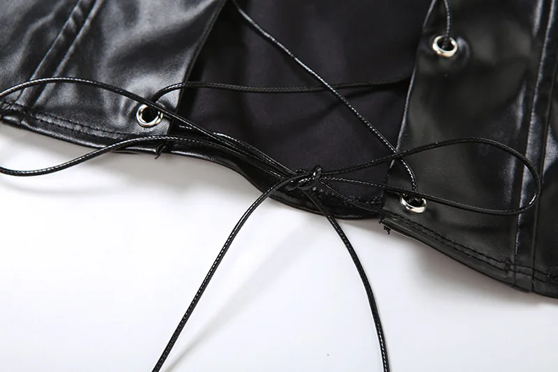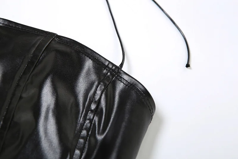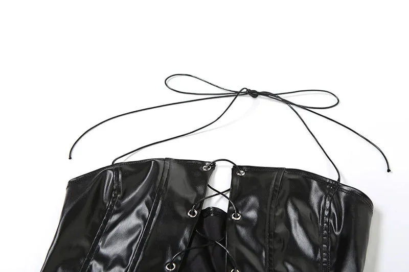Lunivop PU Leather 2 Piece Set Women Black Grommet Lace Up Strapless Halter Backless Tank Tops + Shorts Y2K Clubwear Suits Hottie Outfit