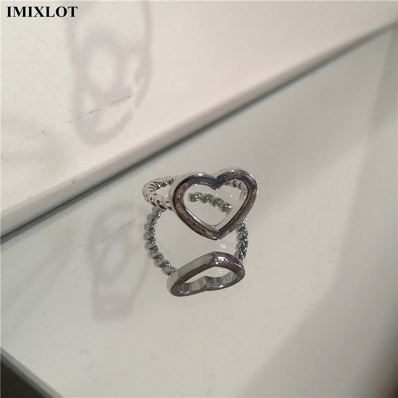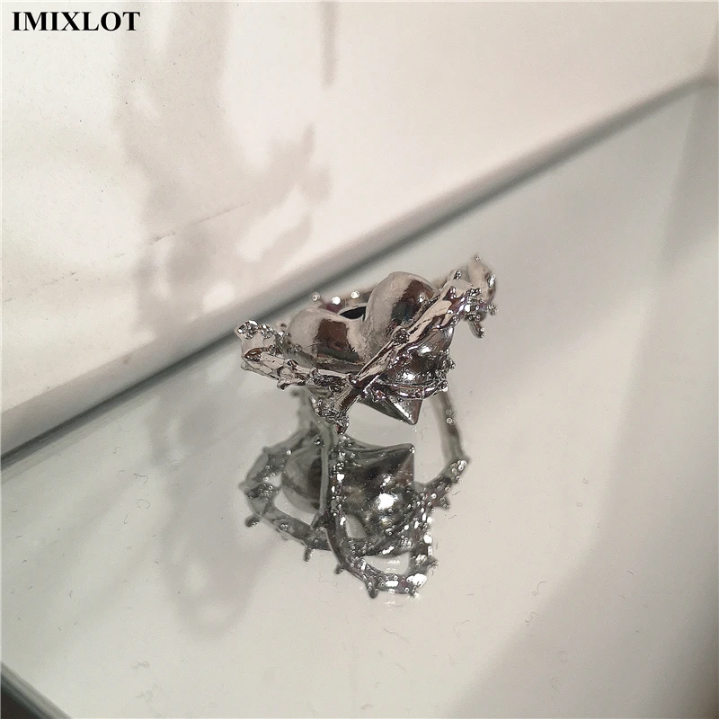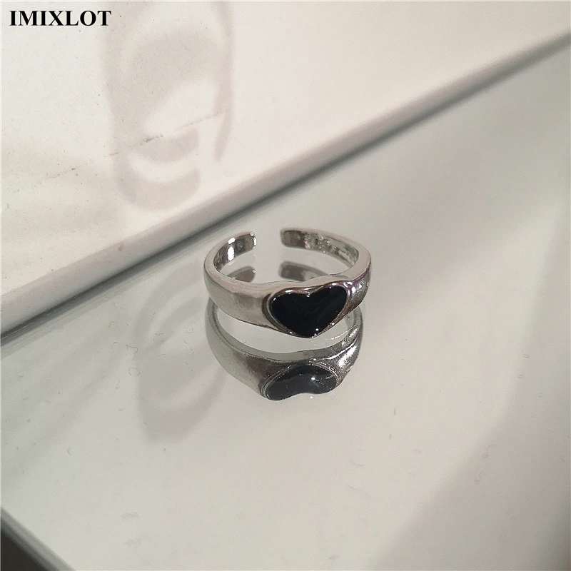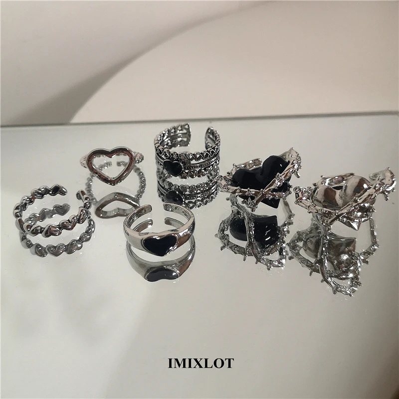 Lunivop Punk Gothic Thorns Black Silver Color Heart Metal Open Adjustable Ring For Women Men Girls Party Grunge Y2k Jewelry Accessories