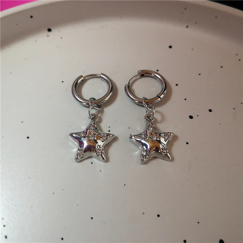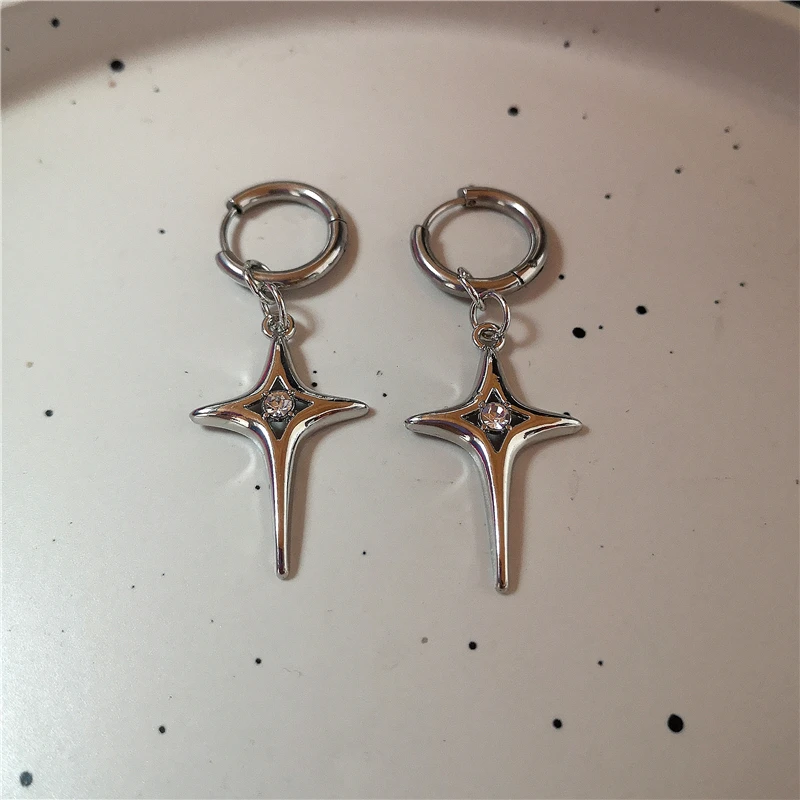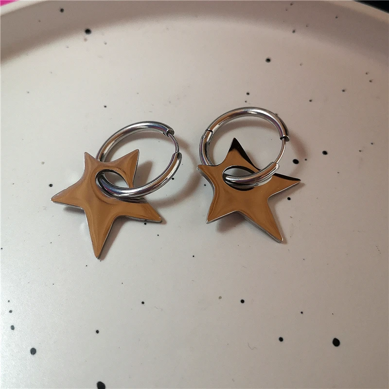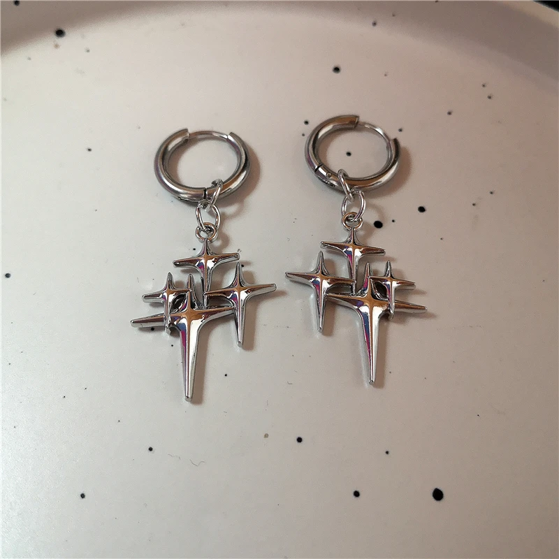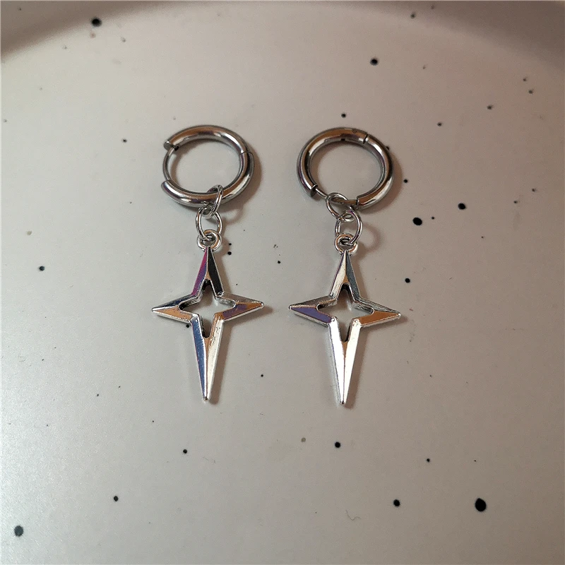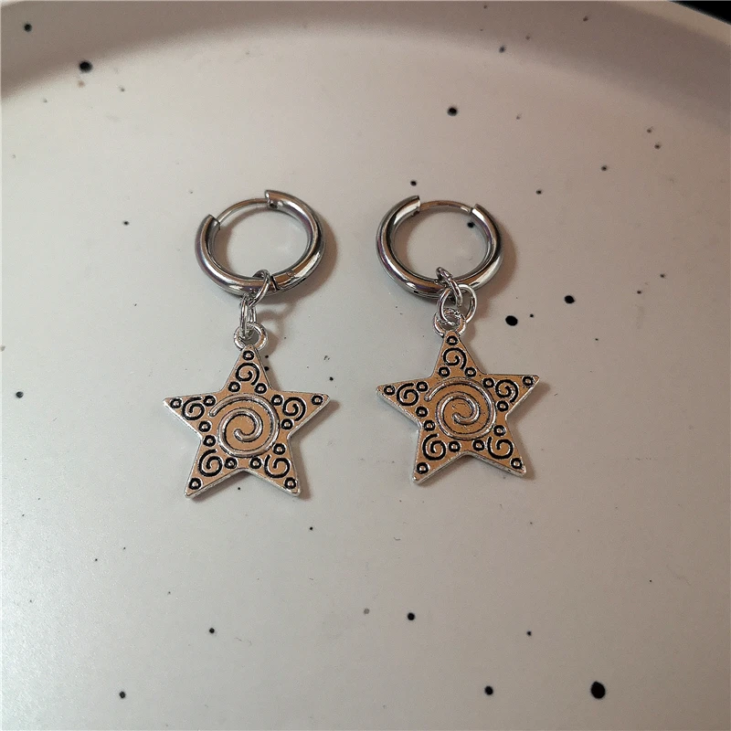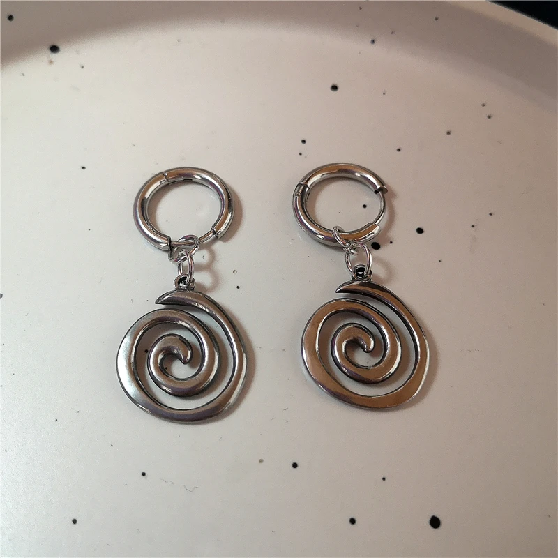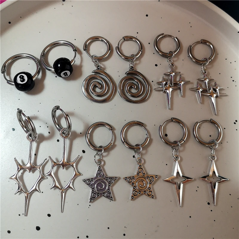 Lunivop Punk Stainless Steel Spiral Vortex Star Earrings Cool Charms Black 8 Hoop Earrings Women Men Goth Y2K Accessories Grunge Jewelry