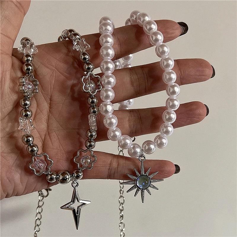 Lunivop Punk Vintage Sun Totem Pendant Clavicle Chain Fashion Imitation Pearl Necklace For Women Men Aesthetics EMO Goth Jewelry Gift