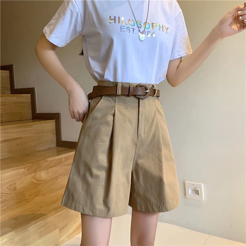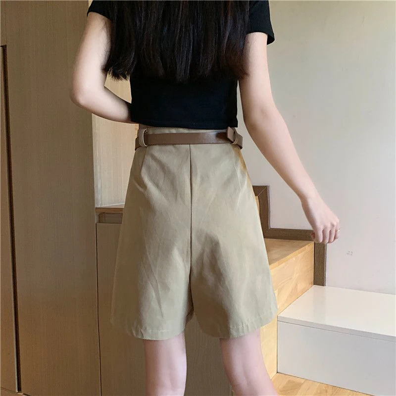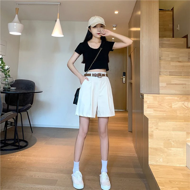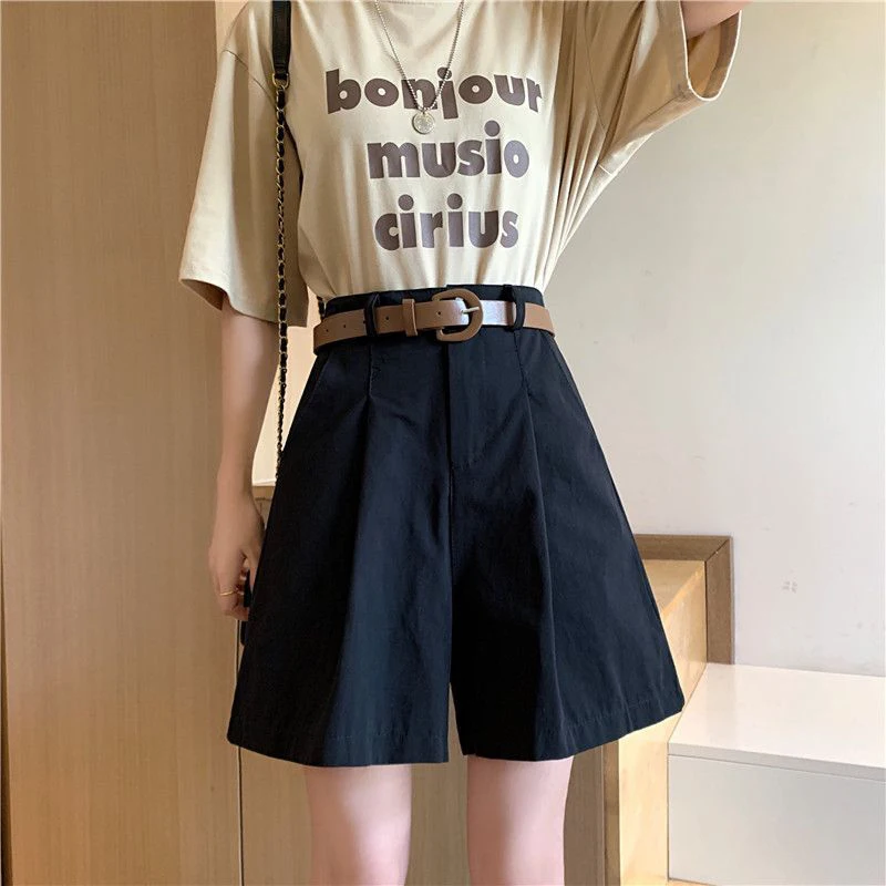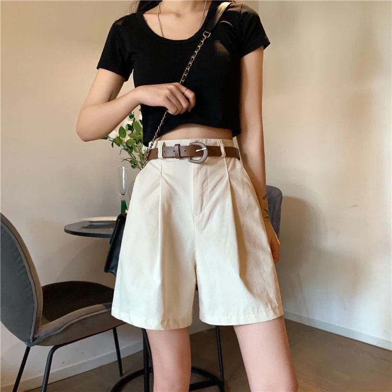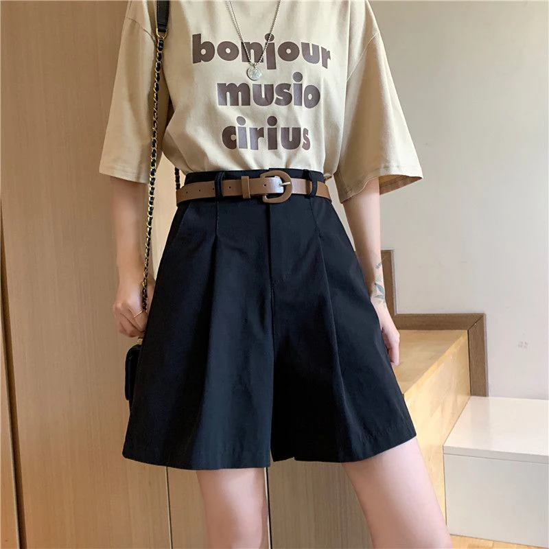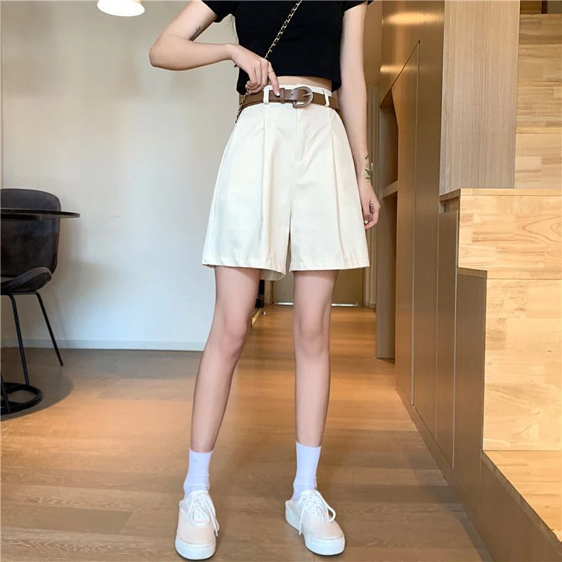 Lunivop Pure Cotton Suit Shorts Women Fashion Belt Black Wide Leg Shorts 3Xl Summer Ladies Korean Elegant White Baggy Short Pants