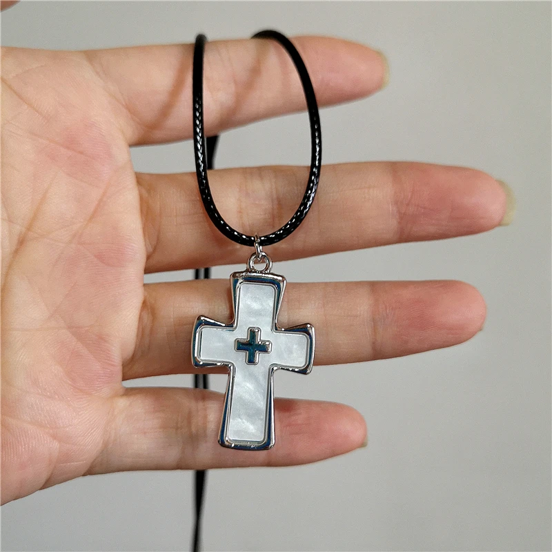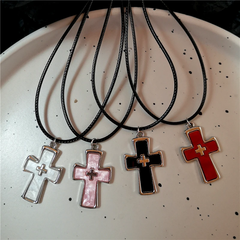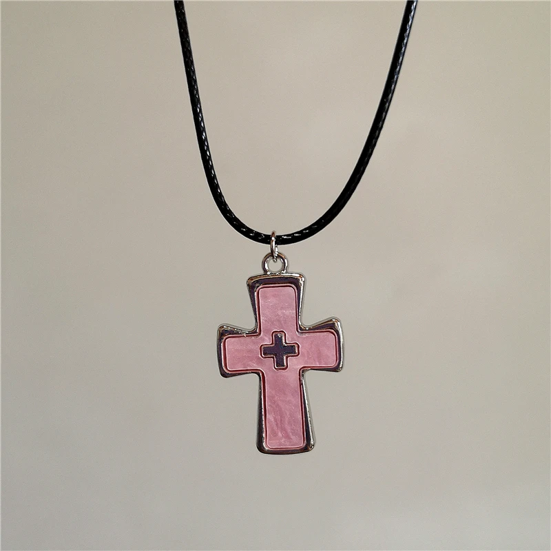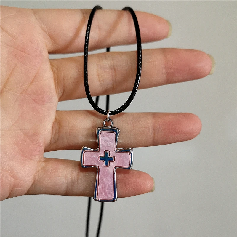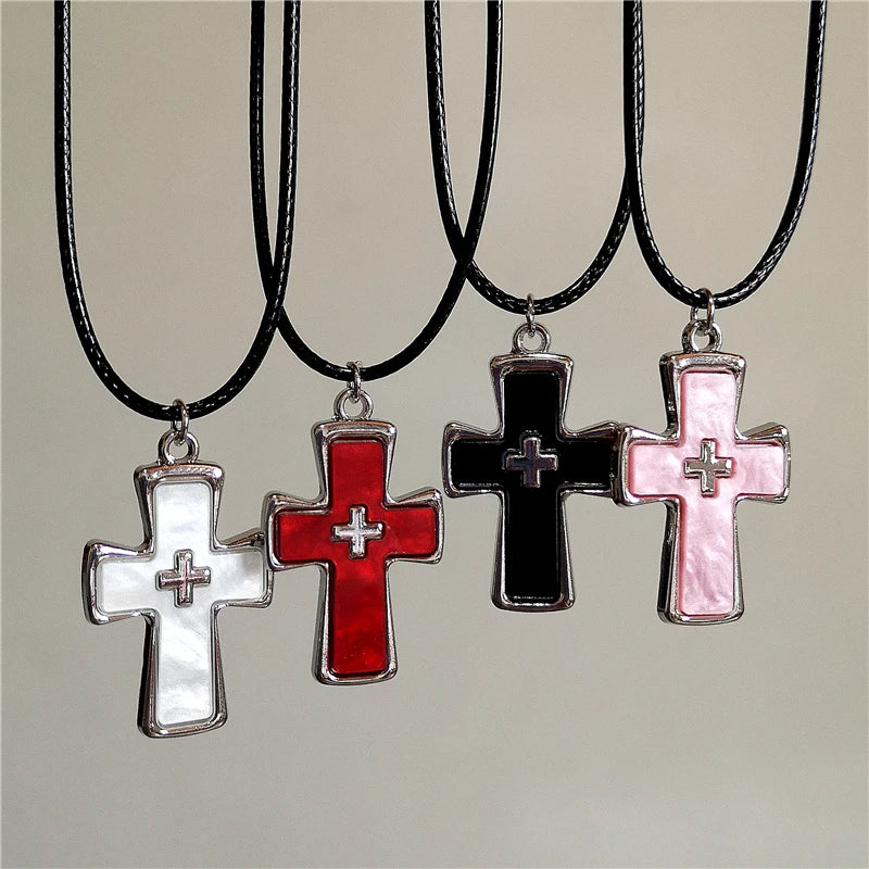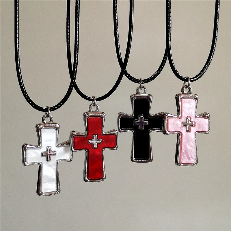 Lunivop Red Pink Large Cross Pendant Leather Choker Necklace Goth Punk Jewelry Charm Statement Women Men Y2k Accessories Halloween Gift