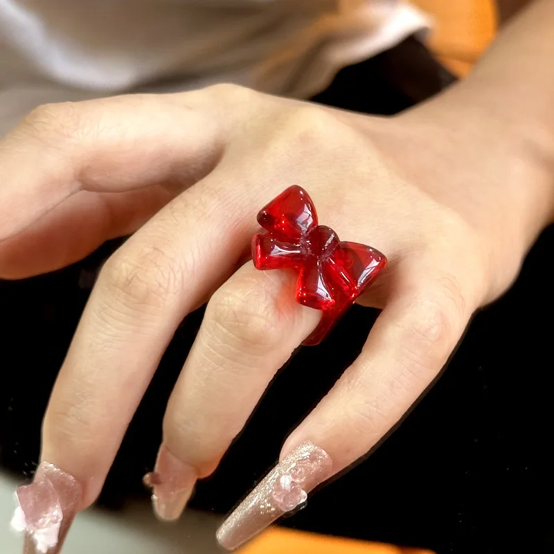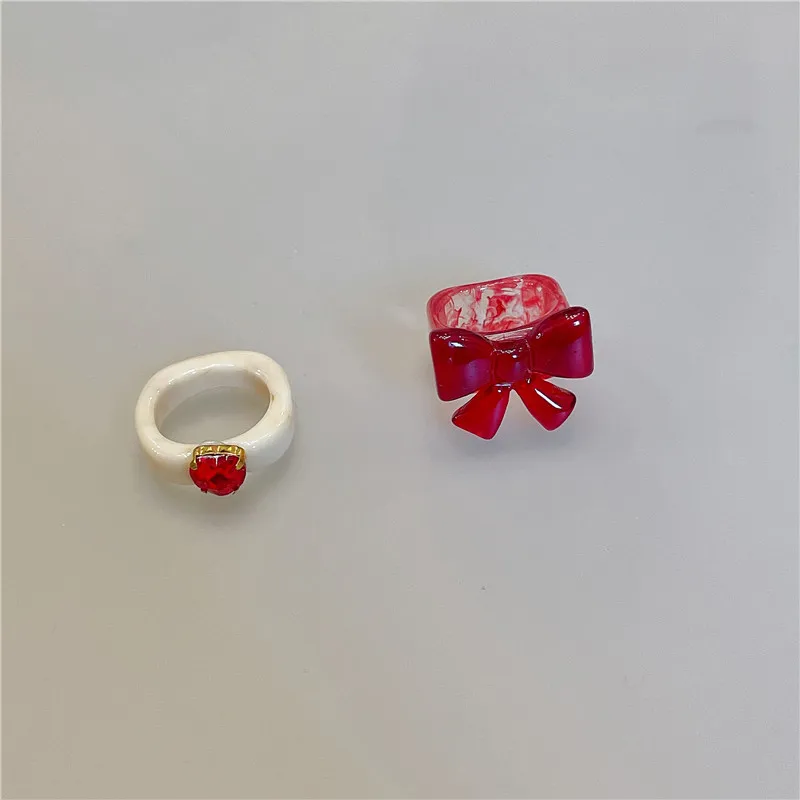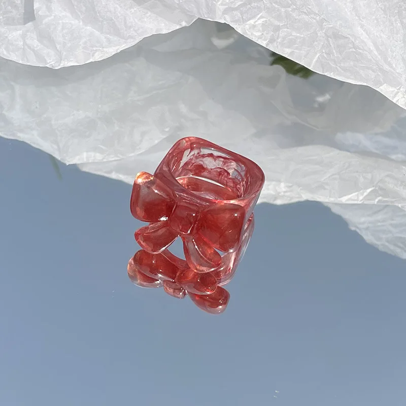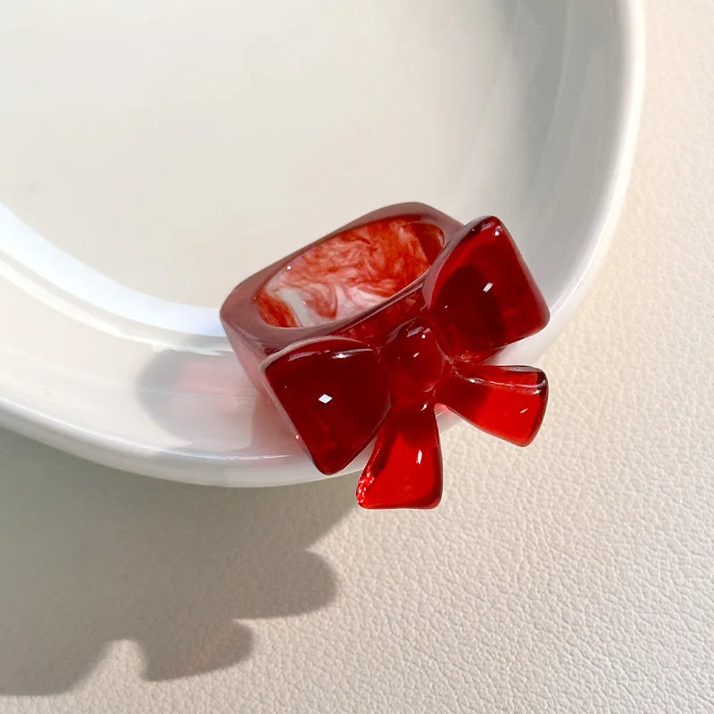 Lunivop Resin Rings Dumpy Acrylic Rings Bowknot Rings set Aesthetic Trendy Colorful Open Rings Statement Jewelry Bow Rings for Women