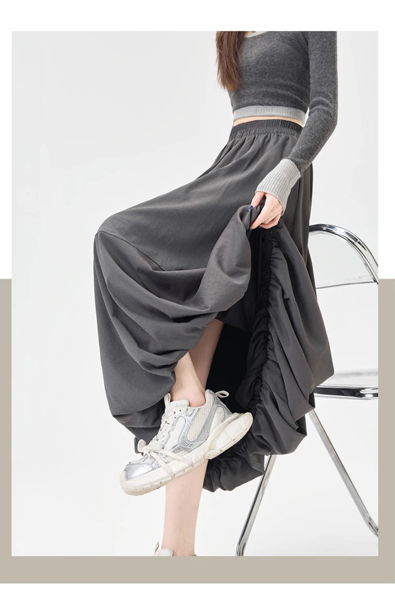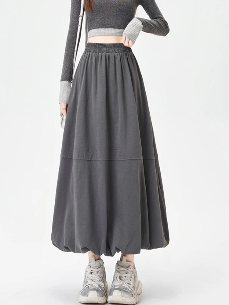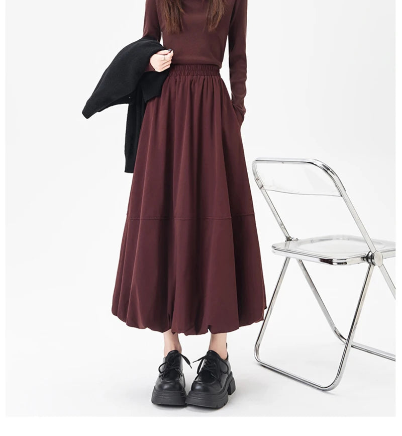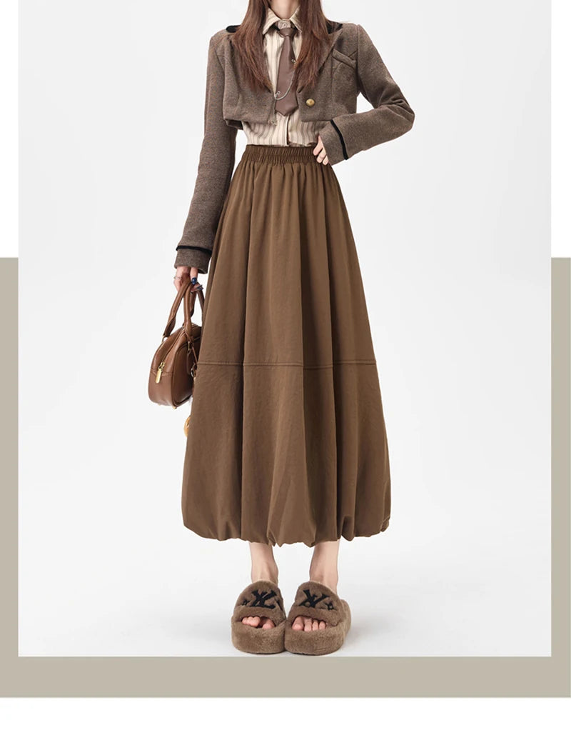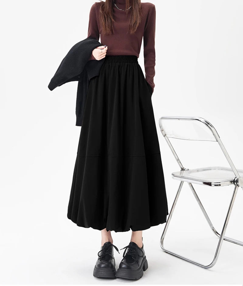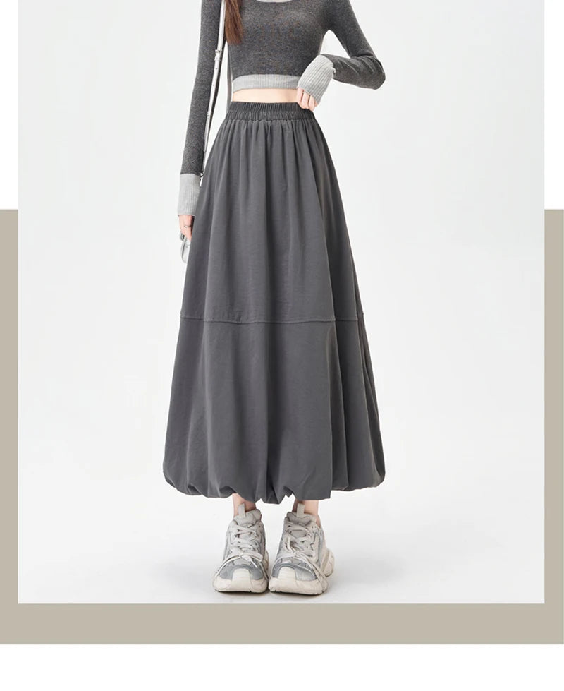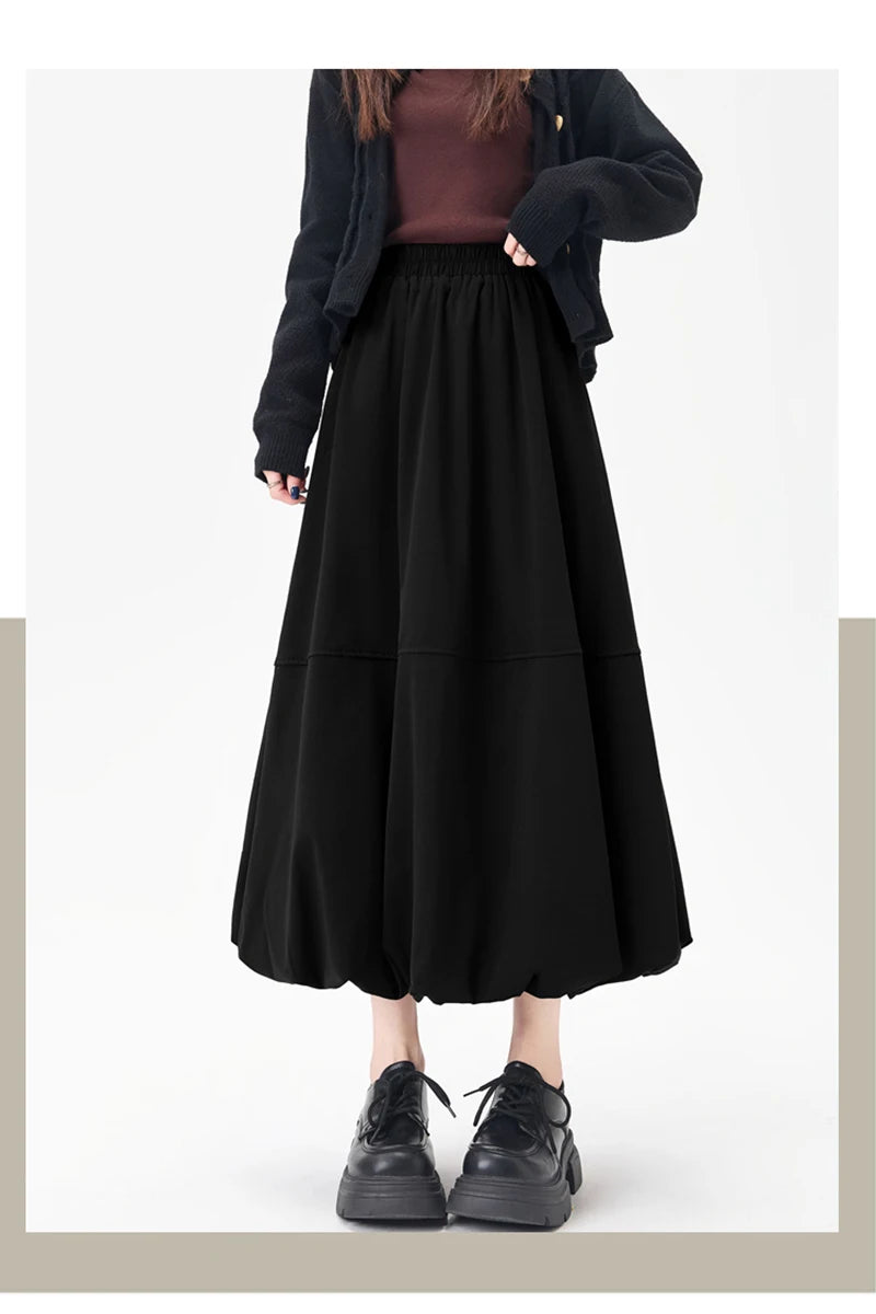 Lunivop Retro Ball Gown Long Skirt Women Loose High Waist Elegant A Line Skirt Fall Vintage Sweet Design Korean Solid Long Skirts