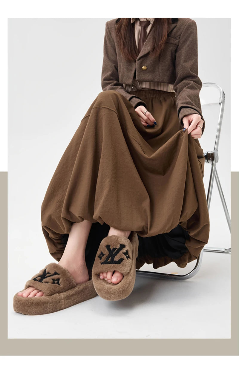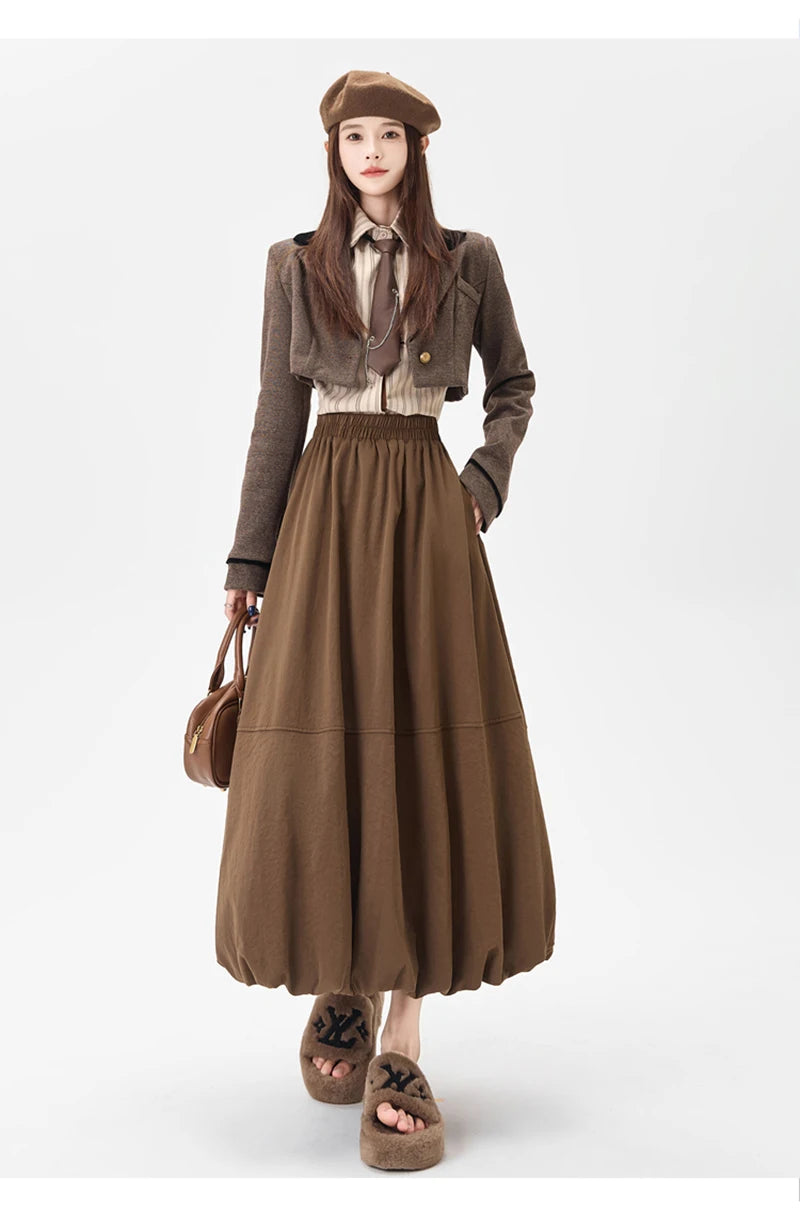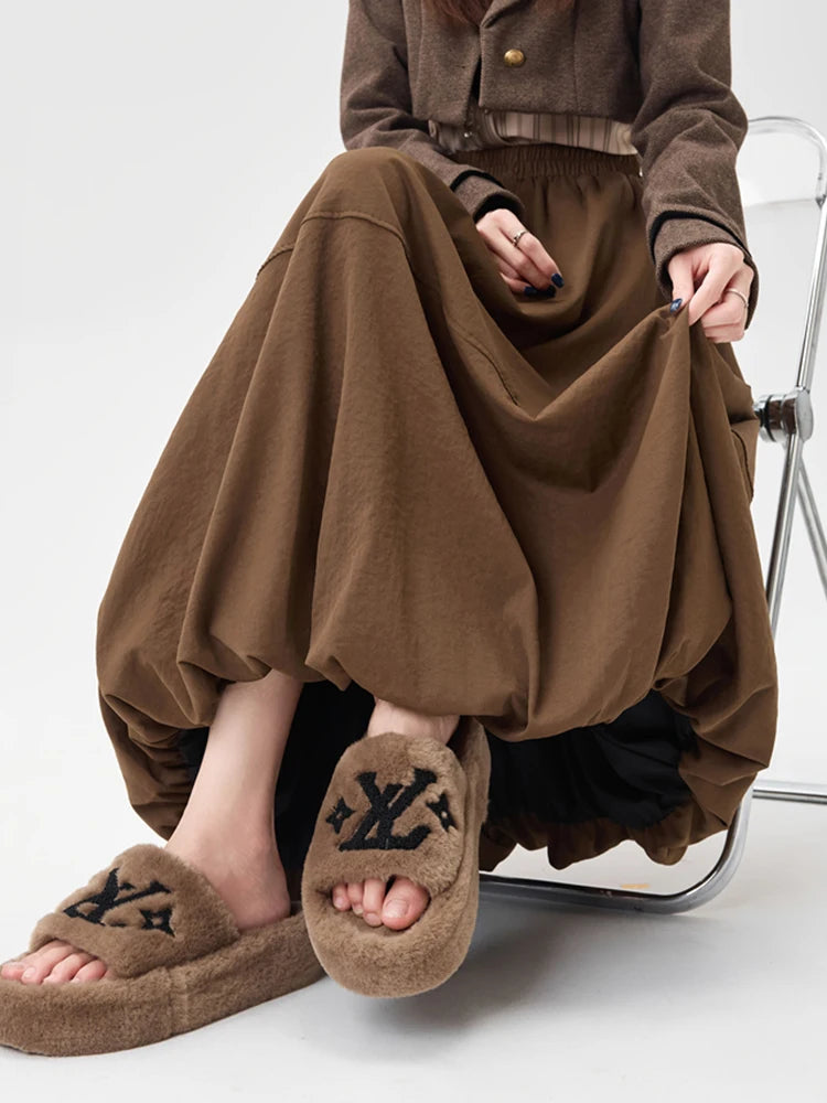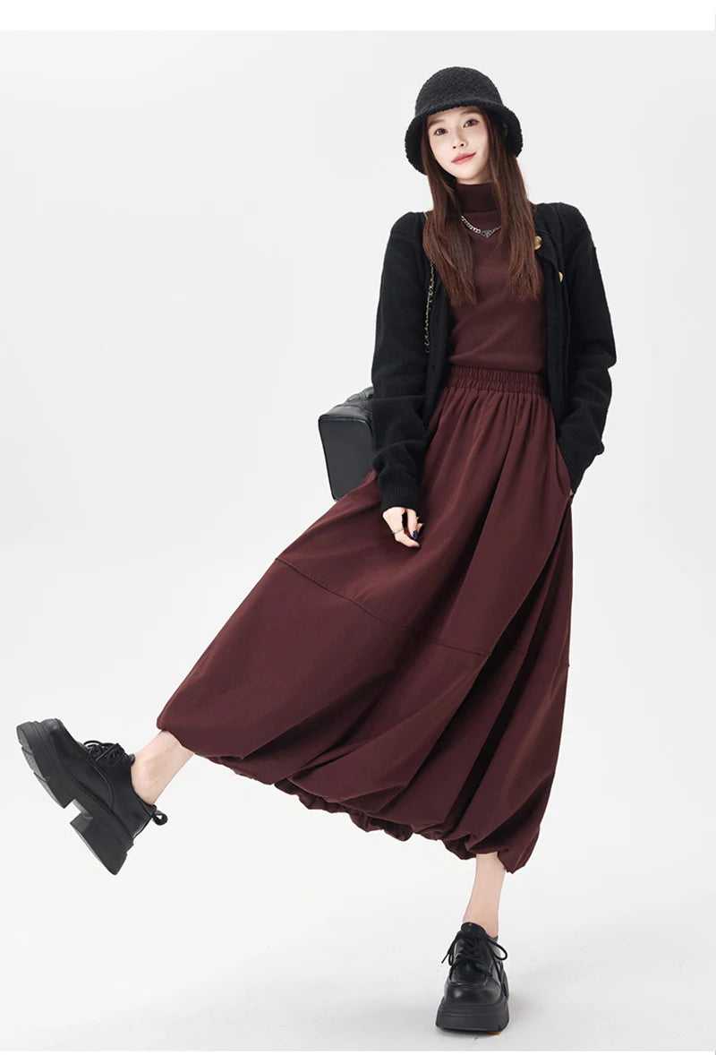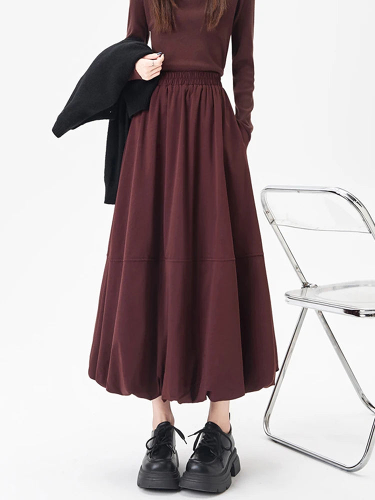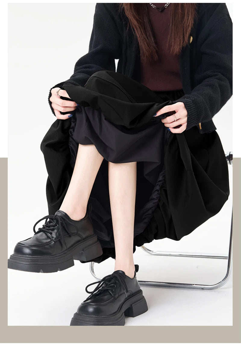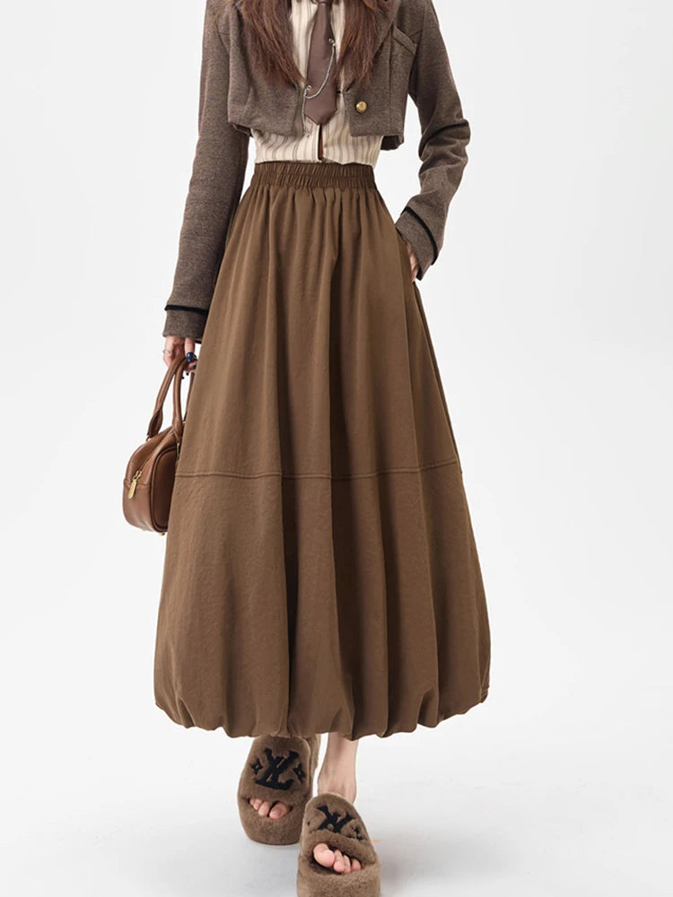 Lunivop Retro Ball Gown Long Skirt Women Loose High Waist Elegant A Line Skirt Fall Vintage Sweet Design Korean Solid Long Skirts