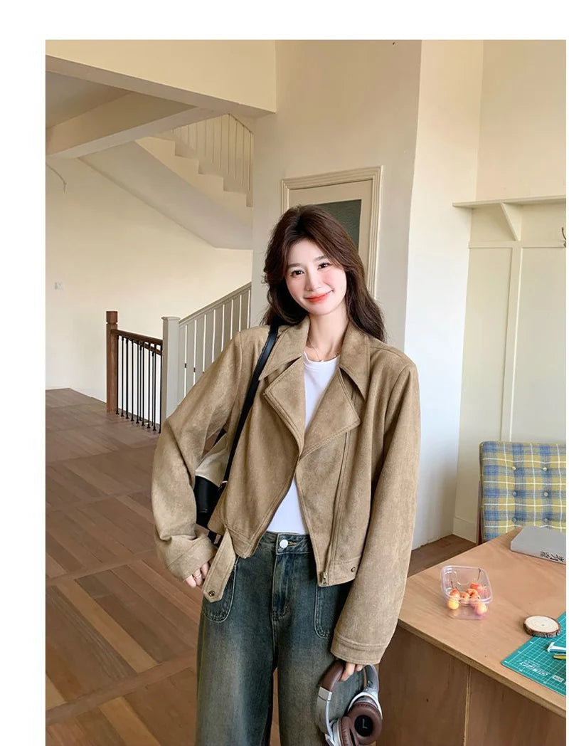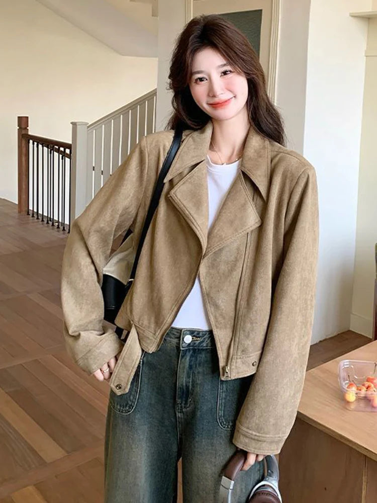 Lunivop Retro Biker Faux Suede Jacket Women Fall Casual Long Sleeve Slim Short Coat Streetwear American Hip Hop Harajuku Tops New