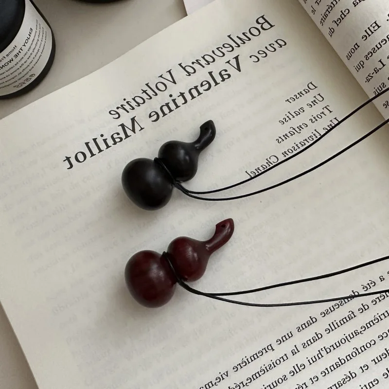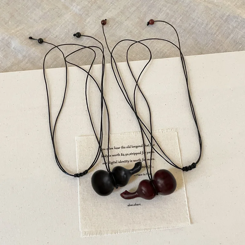 Lunivop Retro New Chinese Wooden Gourd Pendant Long Leather Rope Necklace for Women Girl Versatile Fashion Sweater Chain