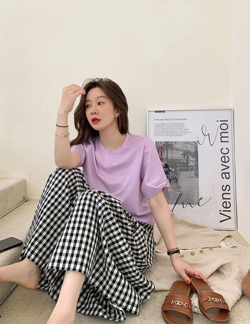 Lunivop Retro Plaid Wide Leg Pants Women Streetwear High Waist Drawstring Loose Casual Trousers Summer Korean All Match Skirt Pant