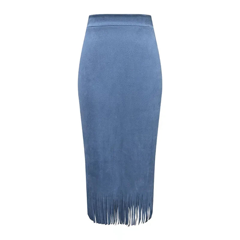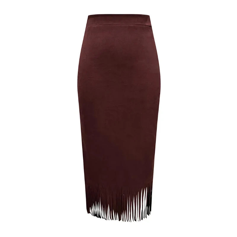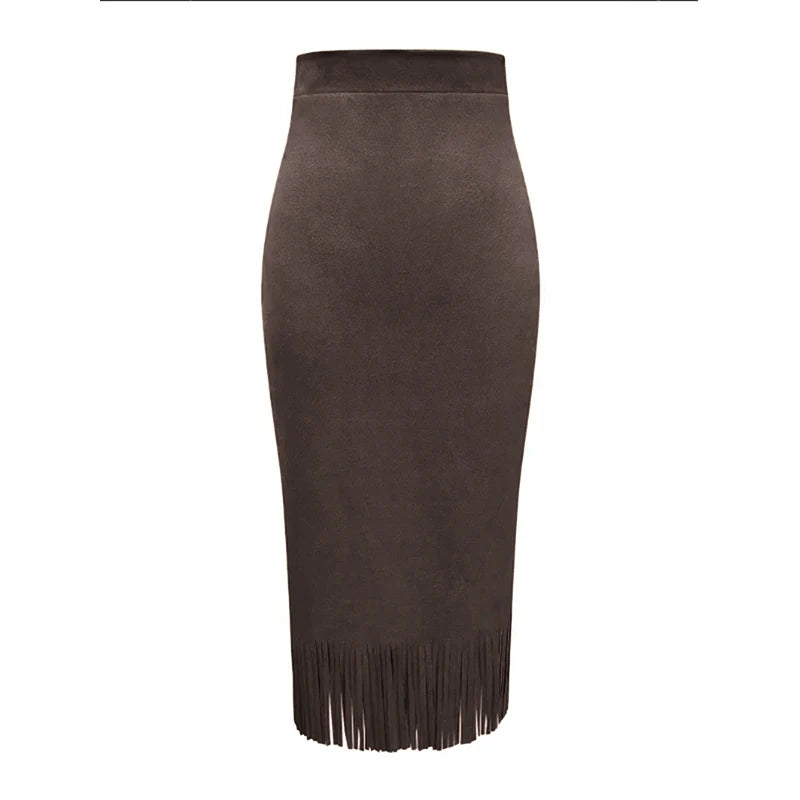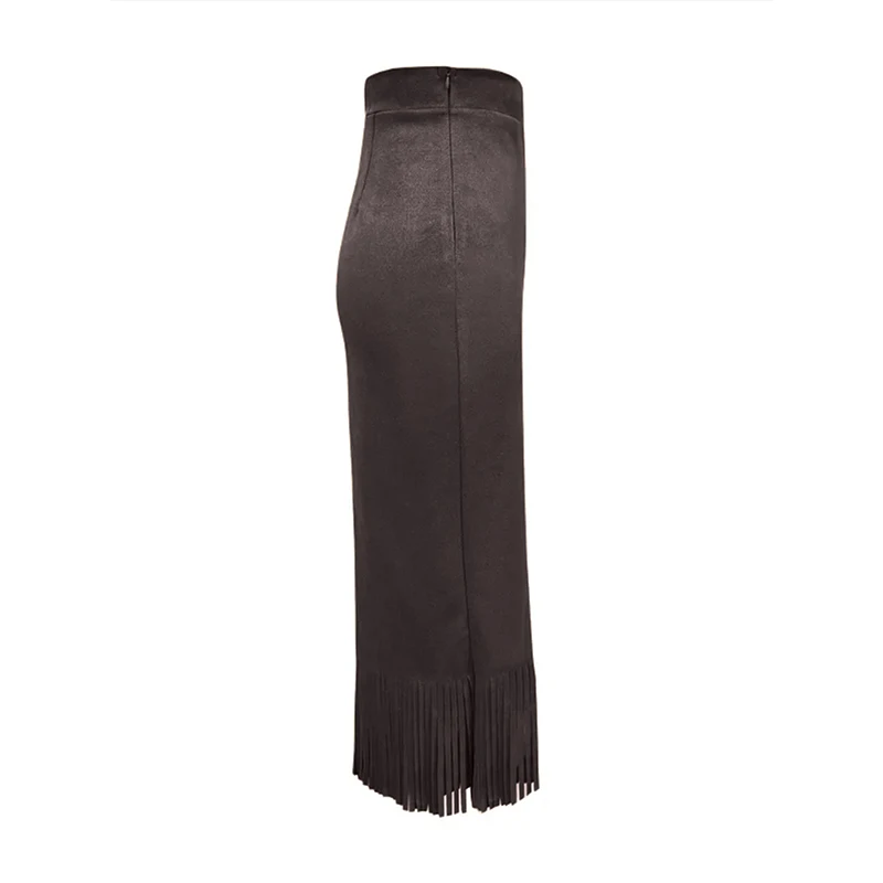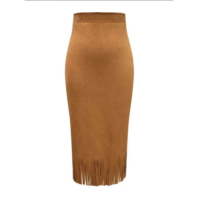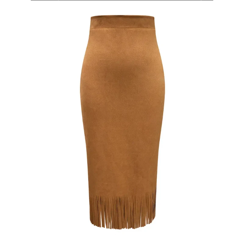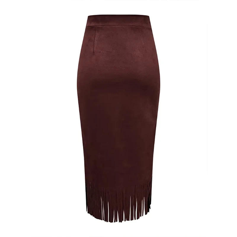 Lunivop Retro Women's Suede Midi Skirt Daily Casual High Waisted Solid Colors Tassel Hem Skirts Fashion Street Autumn Winter Chic Outfit