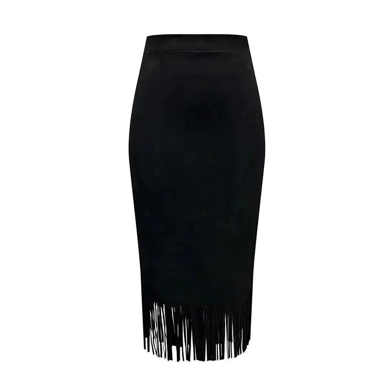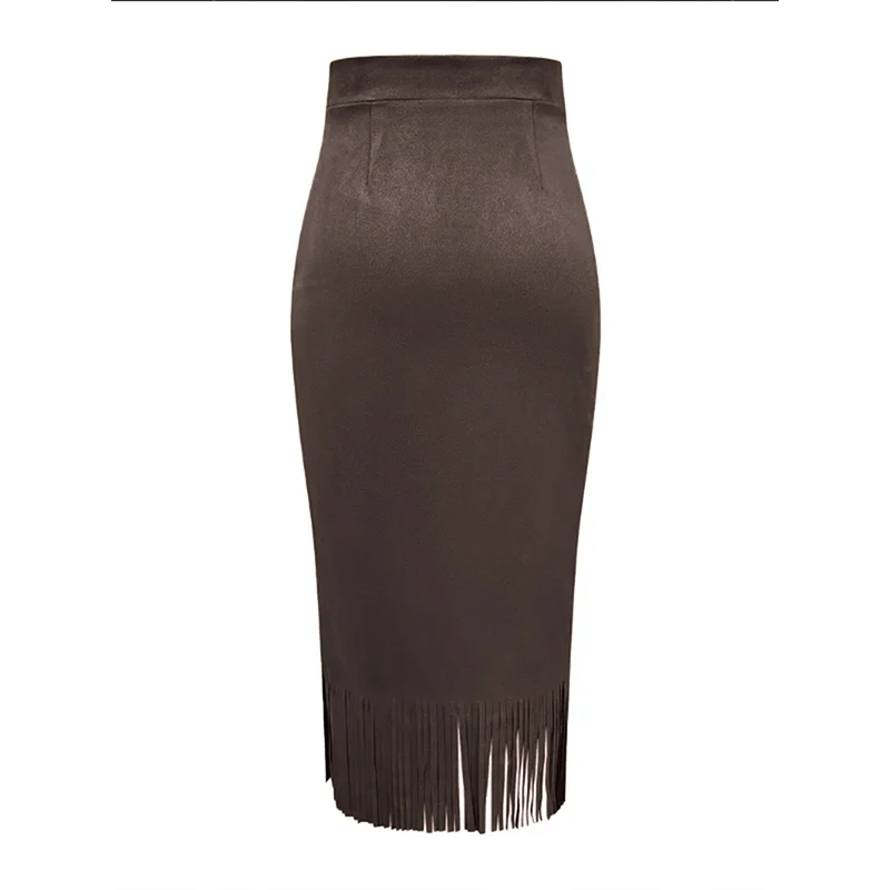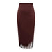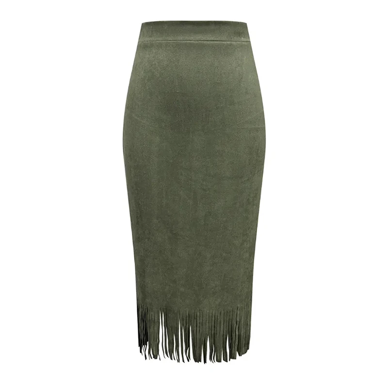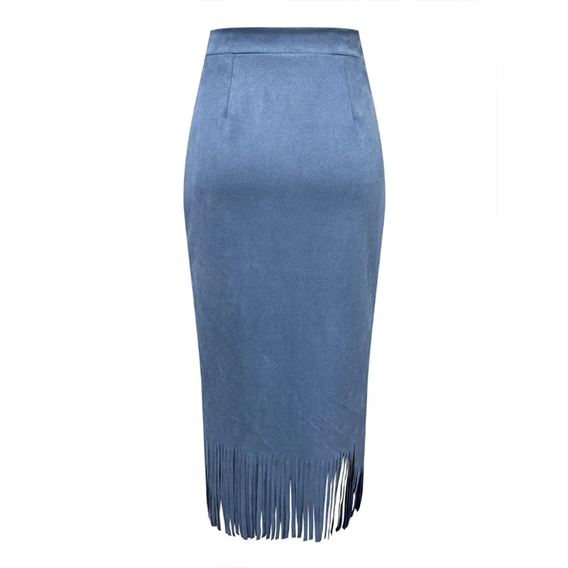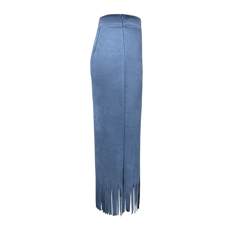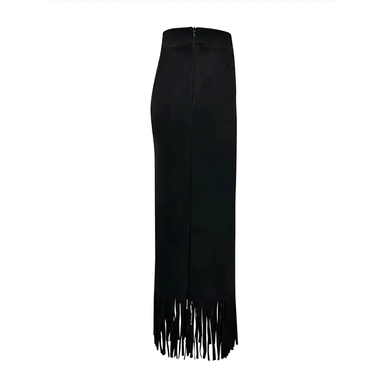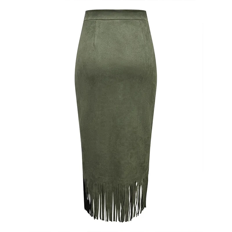 Lunivop Retro Women's Suede Midi Skirt Daily Casual High Waisted Solid Colors Tassel Hem Skirts Fashion Street Autumn Winter Chic Outfit