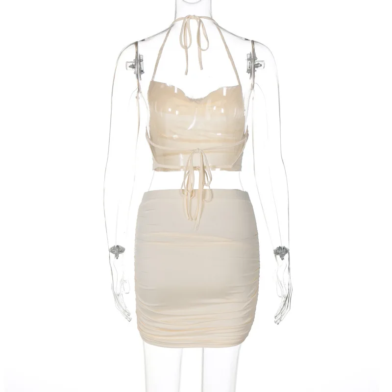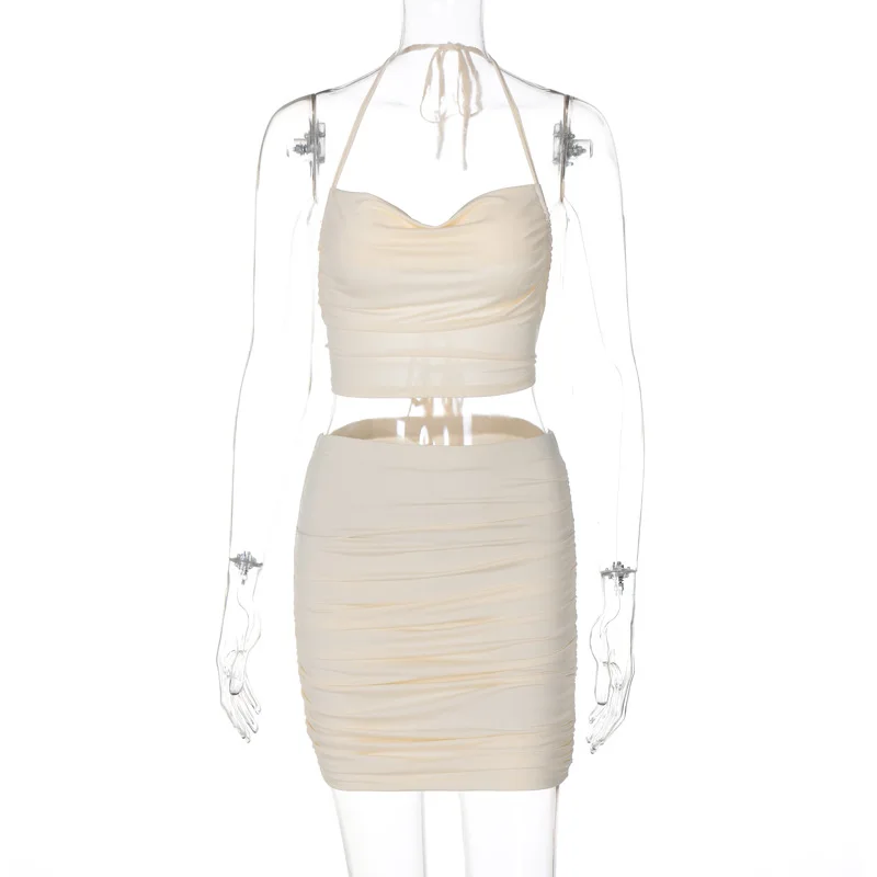 Lunivop Ruched Halter Backless Cami Crop Top Mini Skirt Women'S Sets Vacation Y2k Solid Summer Outfit Vacation Casual Clothes