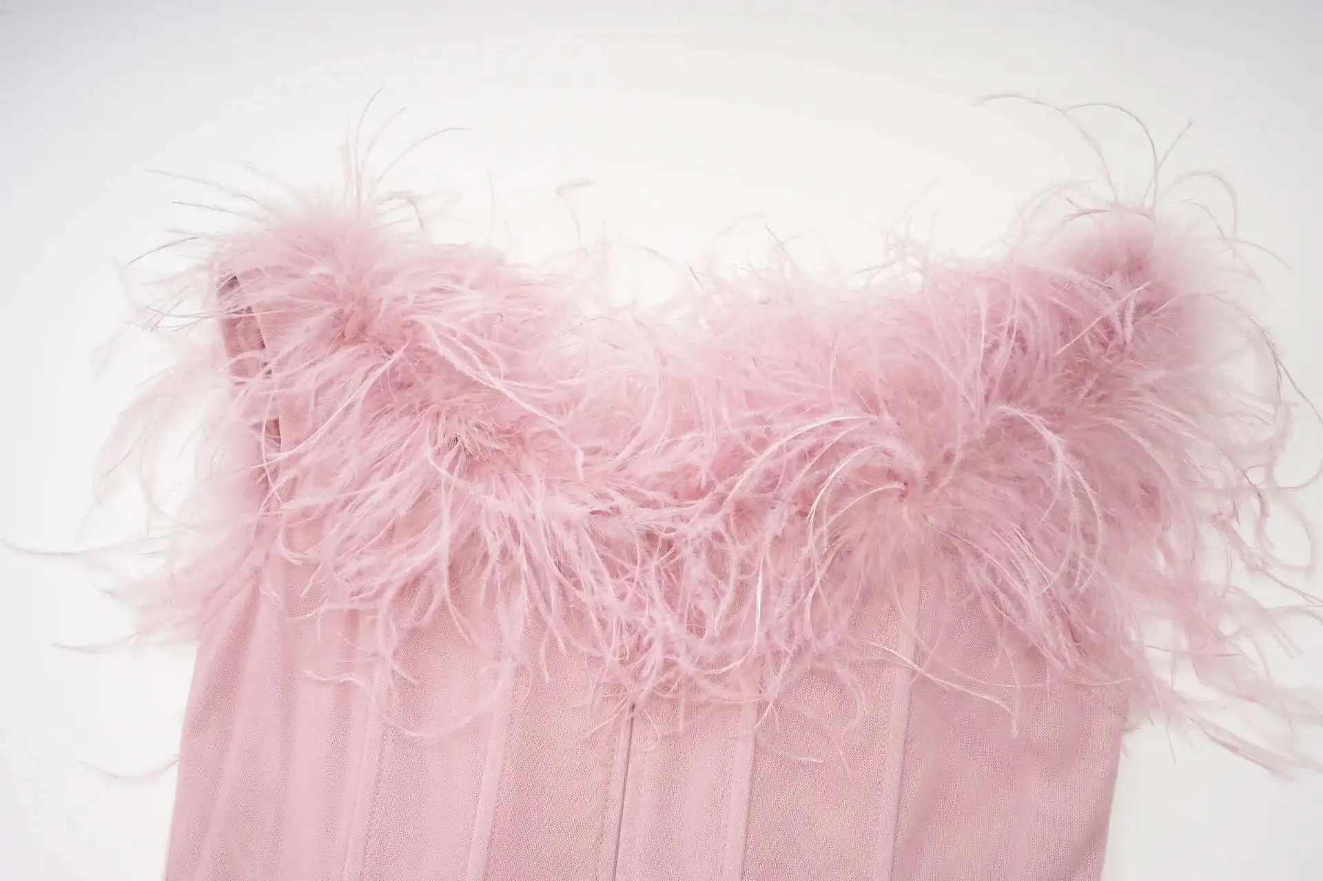 Lunivop Ruffles Edge Strapless Evening Dress Women Slash Neck Fashion Elegant Backless Puffy Dresses Female 2025 Spring New