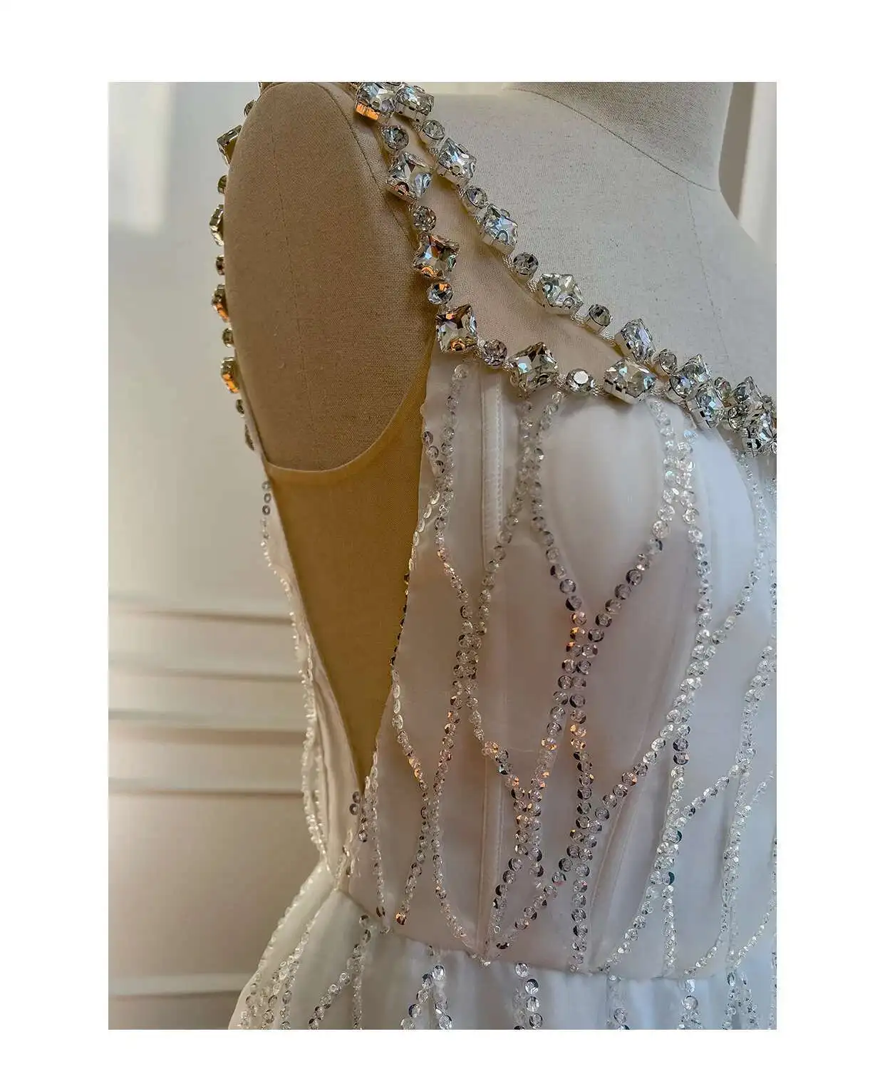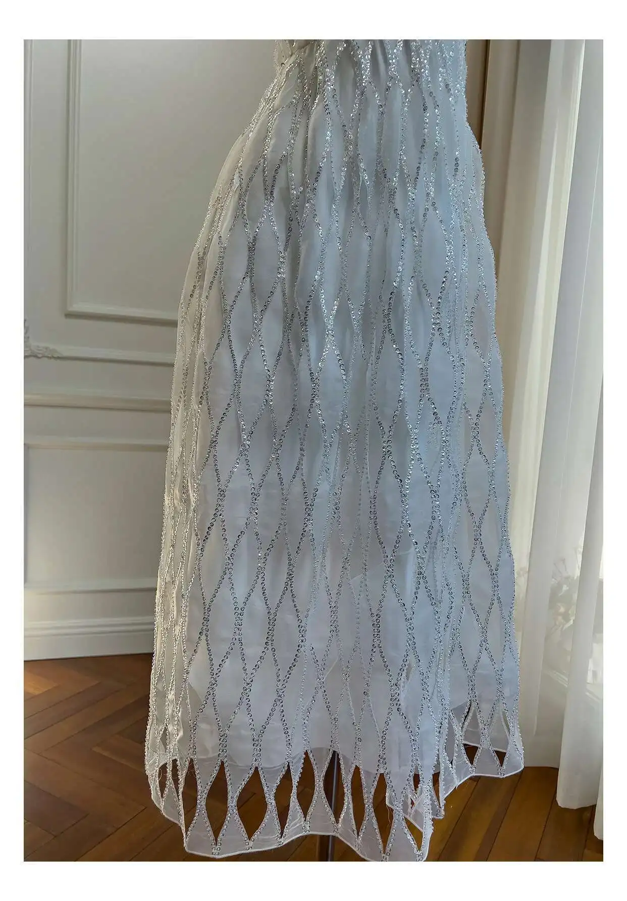 Lunivop Sequin Mesh Hollow Strapless Dresses For Women Slash Collar High Waist High Waist Elegant Dress Female Spring 2025