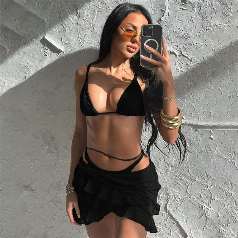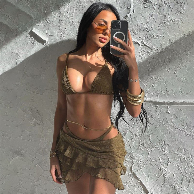 Lunivop Sexy 3 Piece Lace Ruffled Mini Skirt And Bikinis Set Beach Wear Women Summer Vacation Rave Festival Outfits