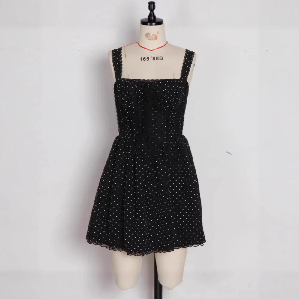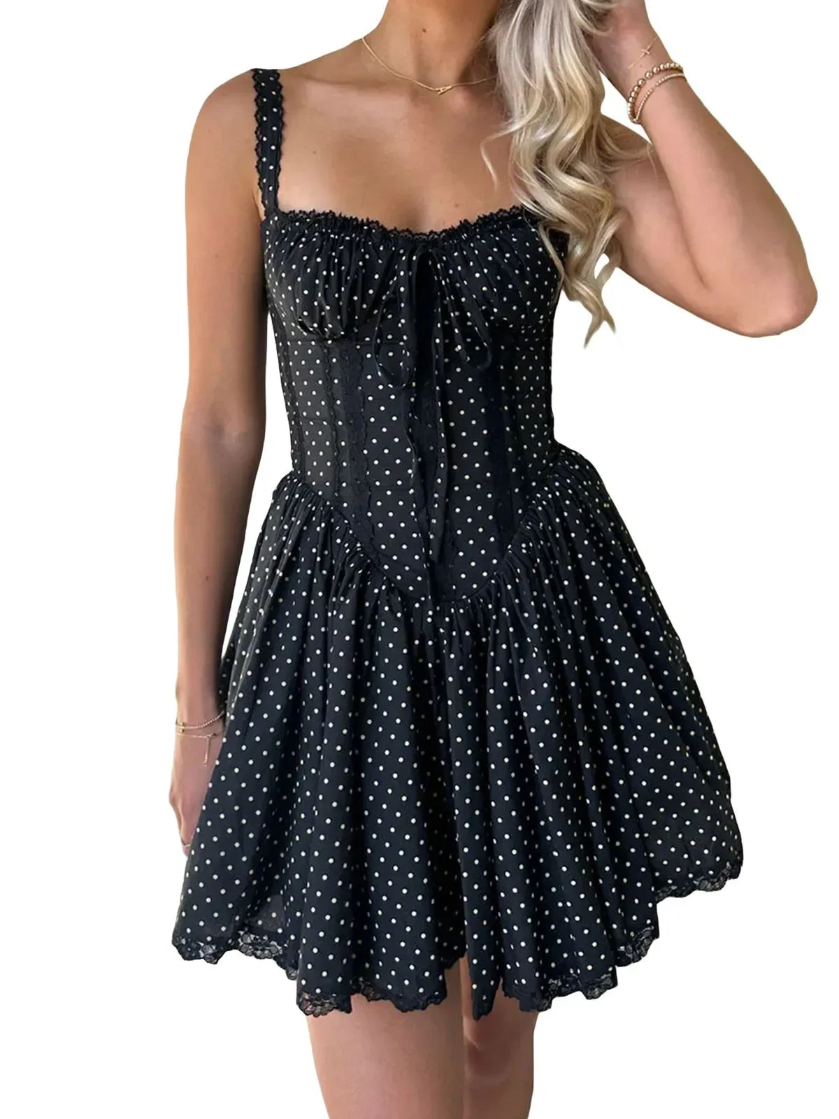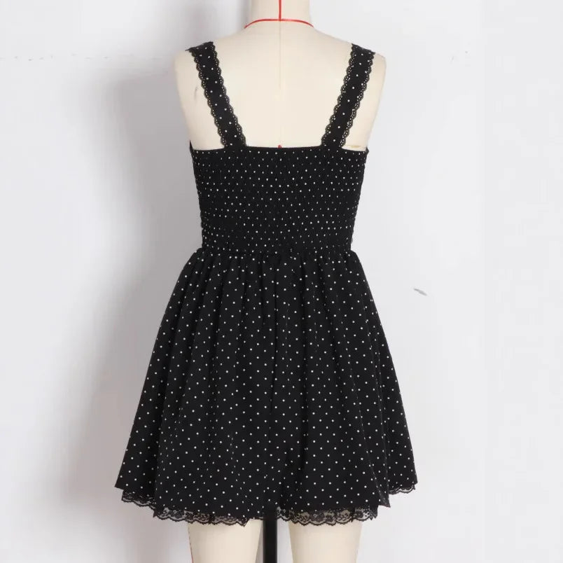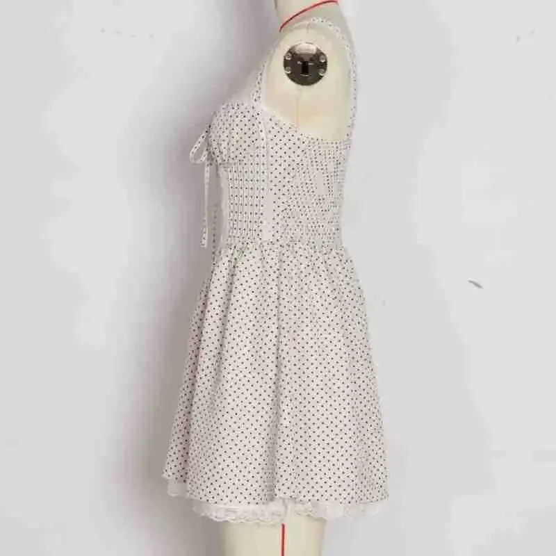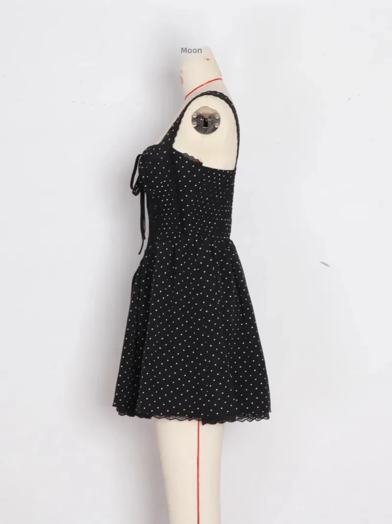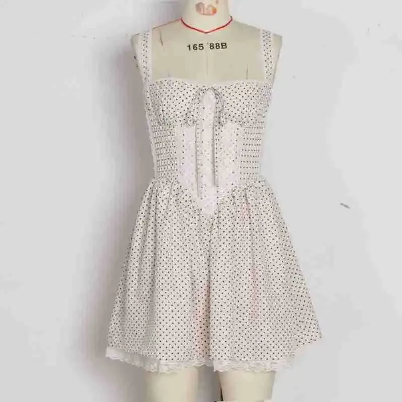 Lunivop Sexy Backless Mini Dress with Belt Polka Dot Strapless Summer Sleeveless Women's Clothing Square Collar Chinese Origin