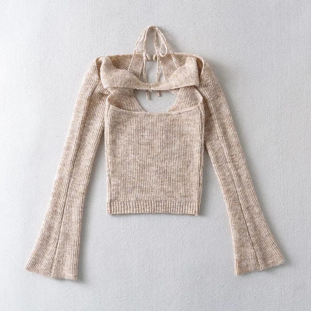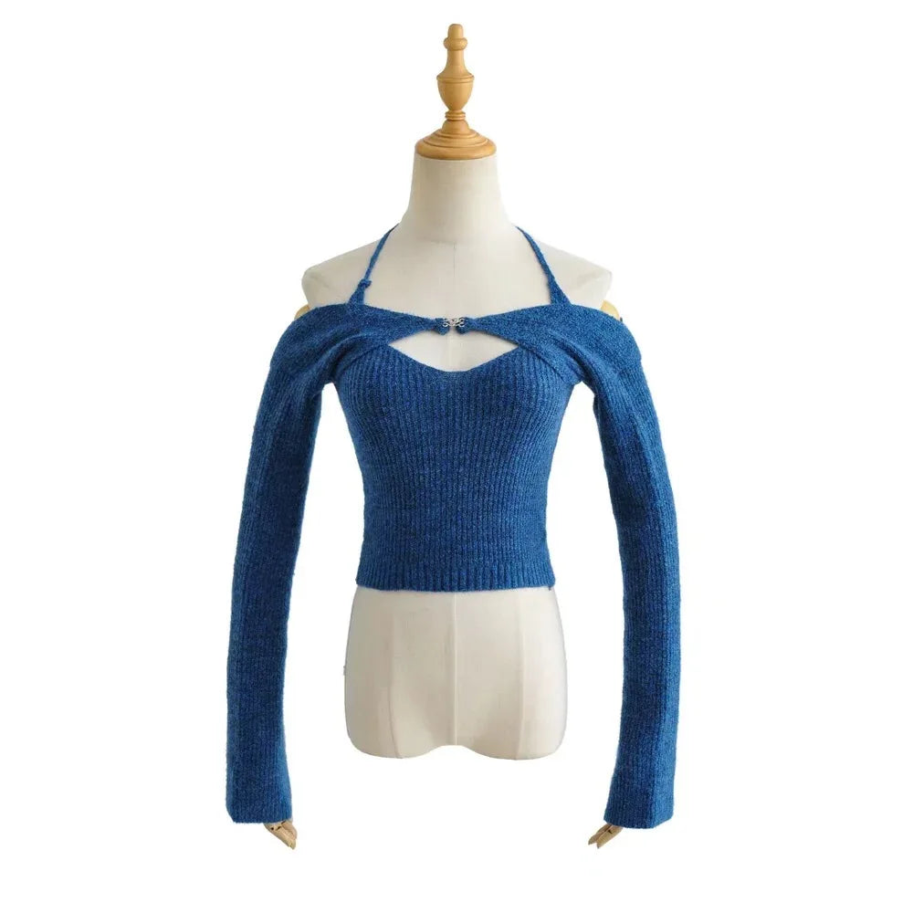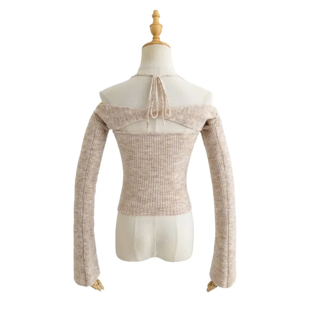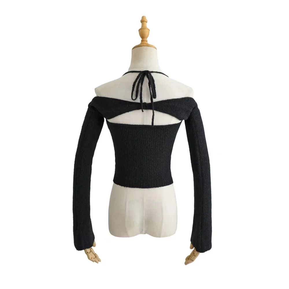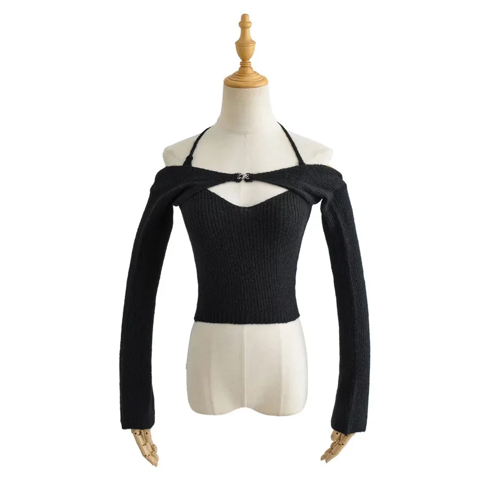 Lunivop Sexy Knitted Off Shoulder Pullovers Cropped Sweater 2 pieces Set Lacing up Halter Knitwear Caim Tank Tops Jumper Tops