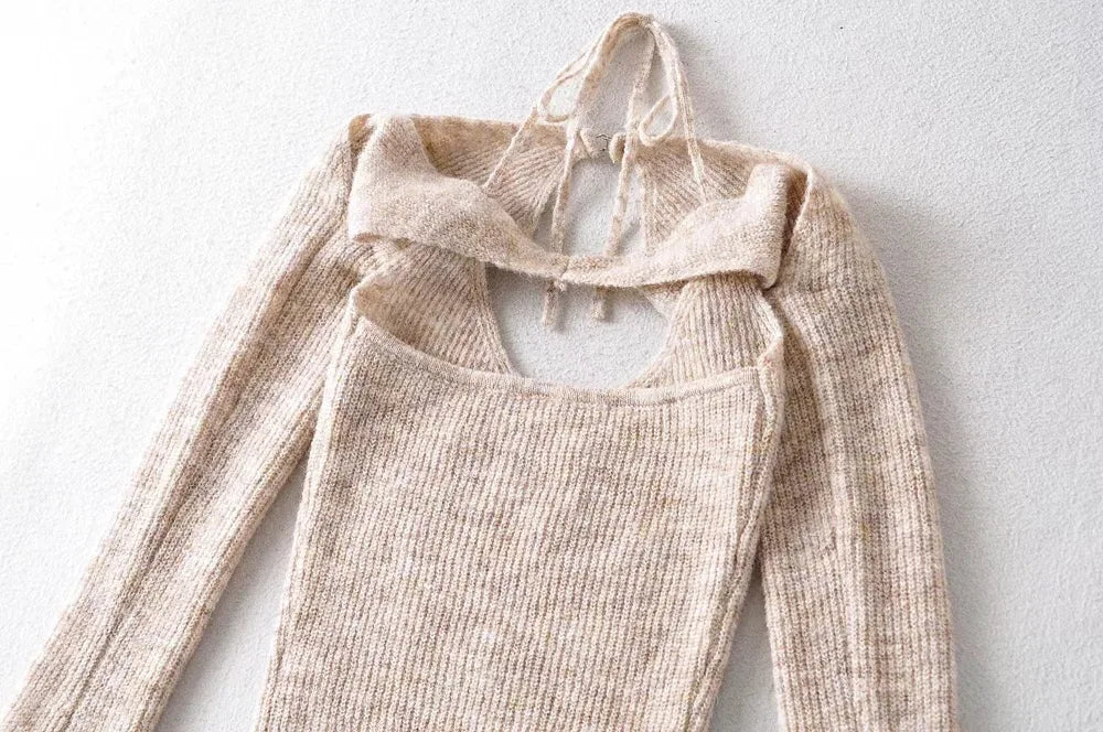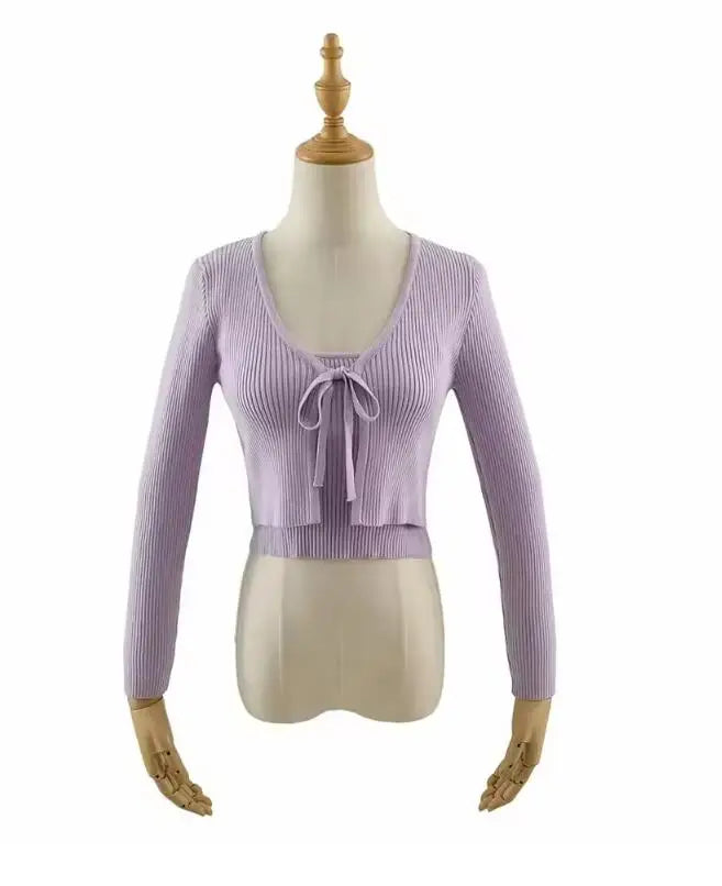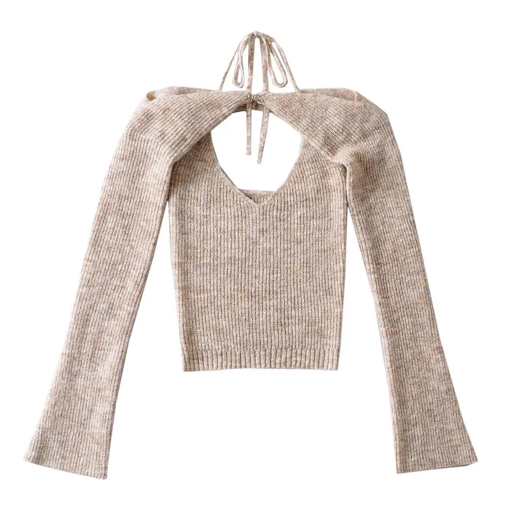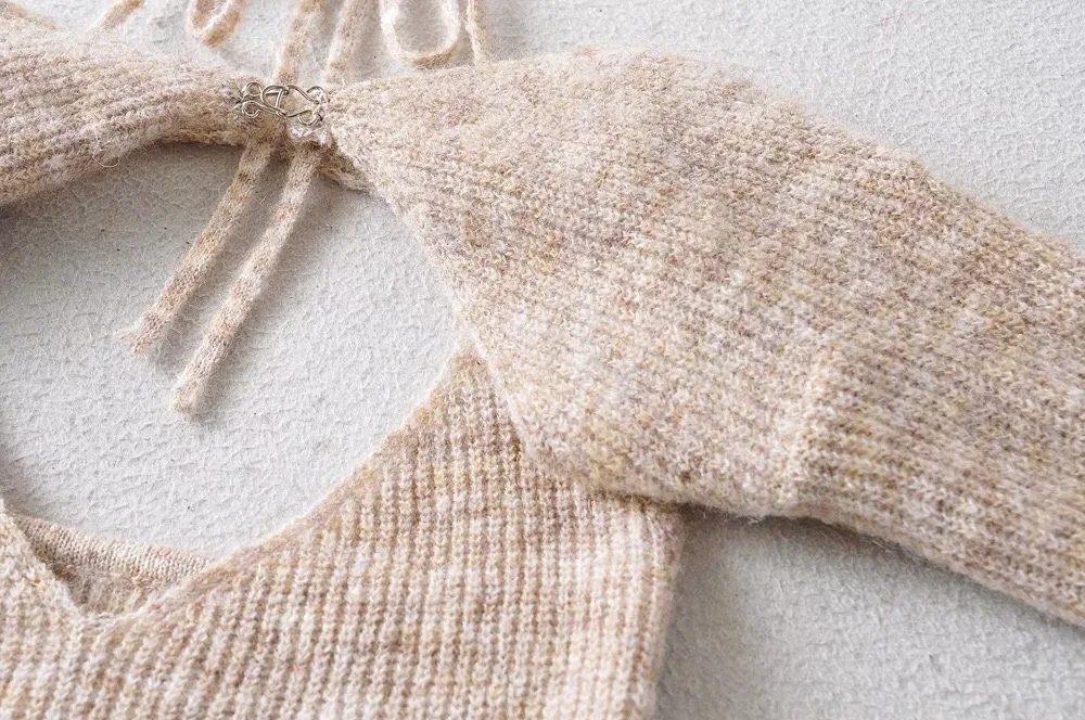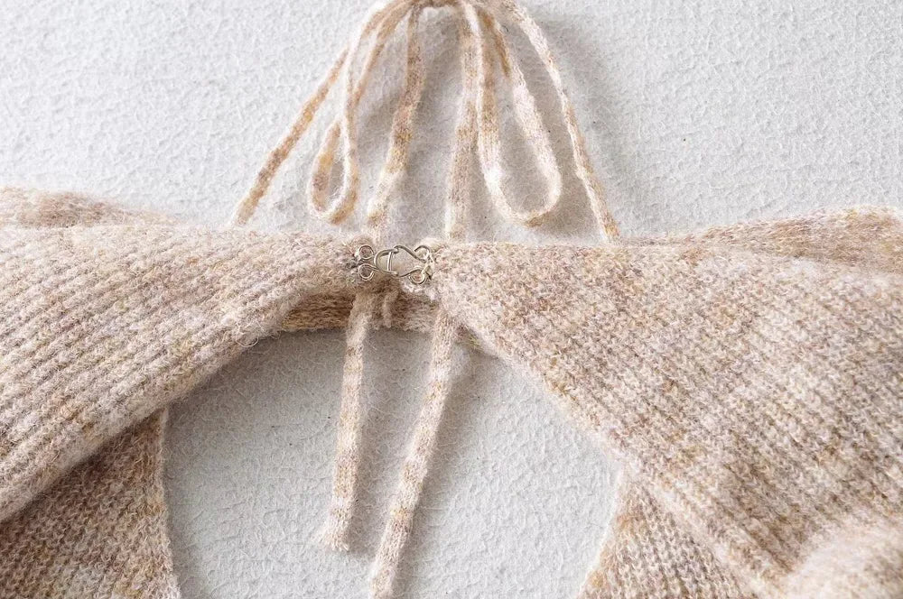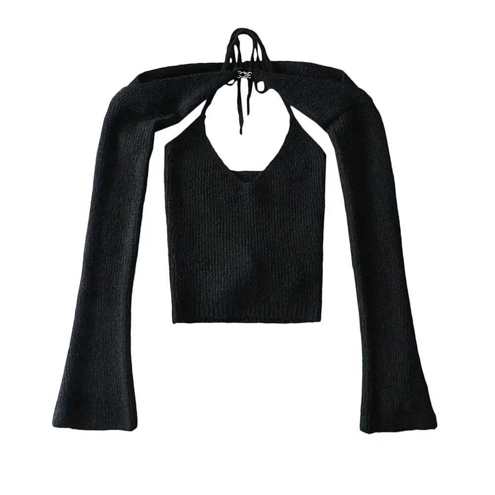 Lunivop Sexy Knitted Off Shoulder Pullovers Cropped Sweater 2 pieces Set Lacing up Halter Knitwear Caim Tank Tops Jumper Tops