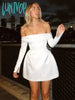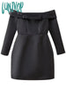 Lunivop Sexy Off Shoulder Mini Dress For Women Solid High Waist Long Sleeve Slits A-line Dresses Party Elegant Evening Dress Lady