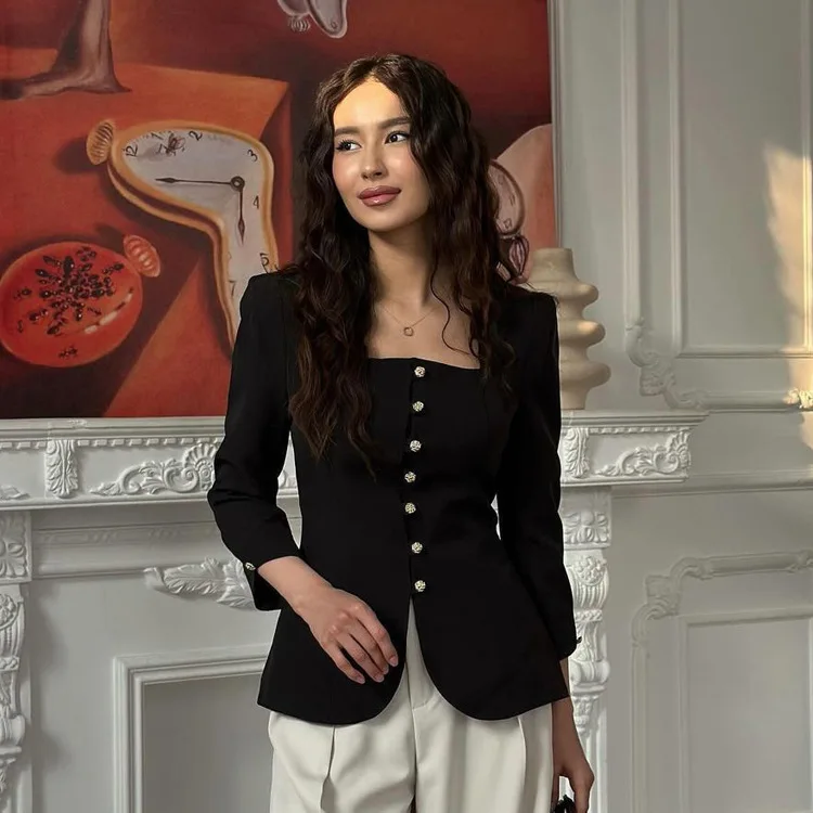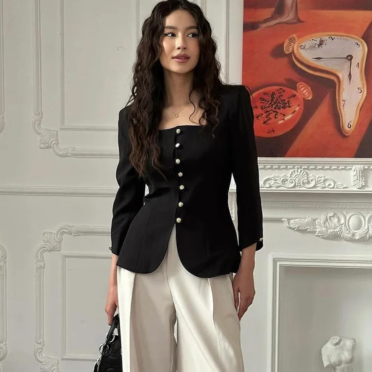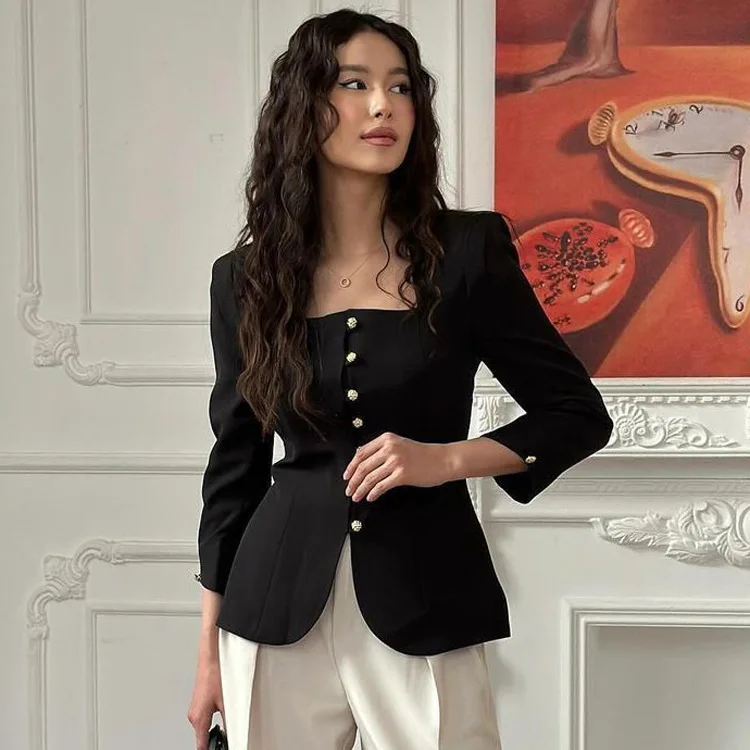 Lunivop Sexy Square Collar Women Coat Black Long Sleeve Single Breasted Jacket Femme Autumn Slim Casual Vacation Streetwear 2024