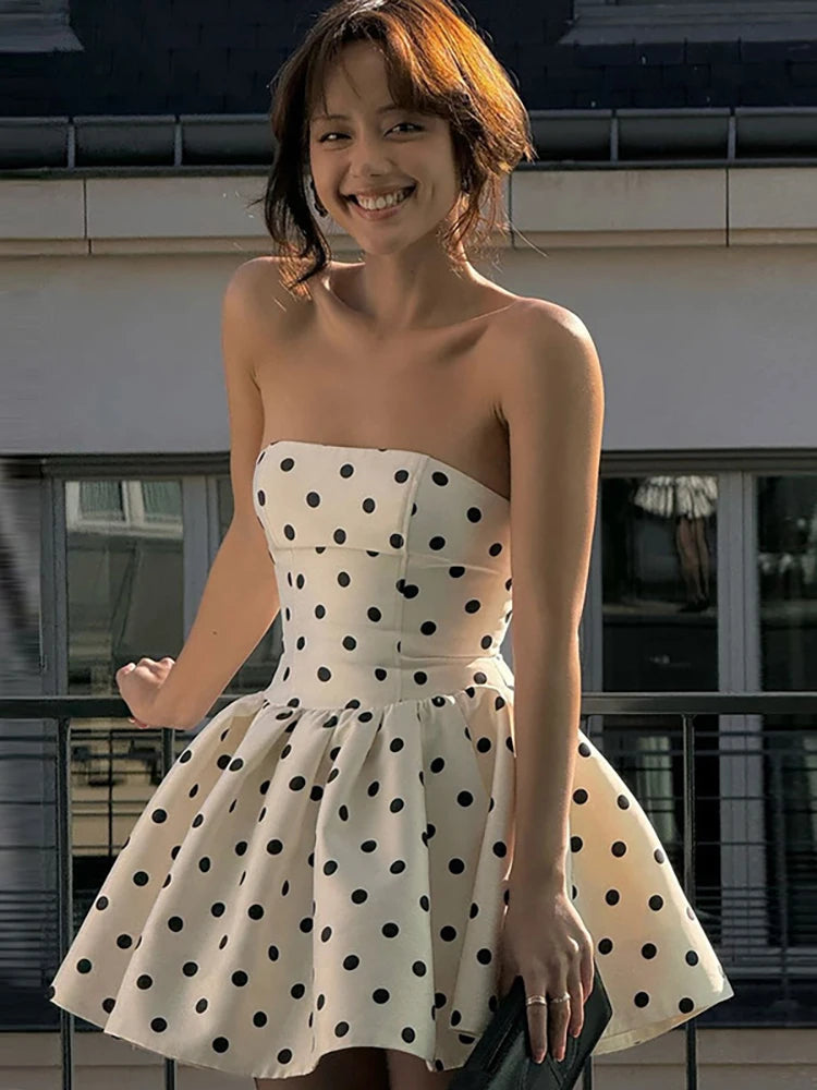 Lunivop Sexy Strapless Print Polka Dots Women Dress Apricot Backless A-line Dress Femme Spring Slim Casual Party Streetwear