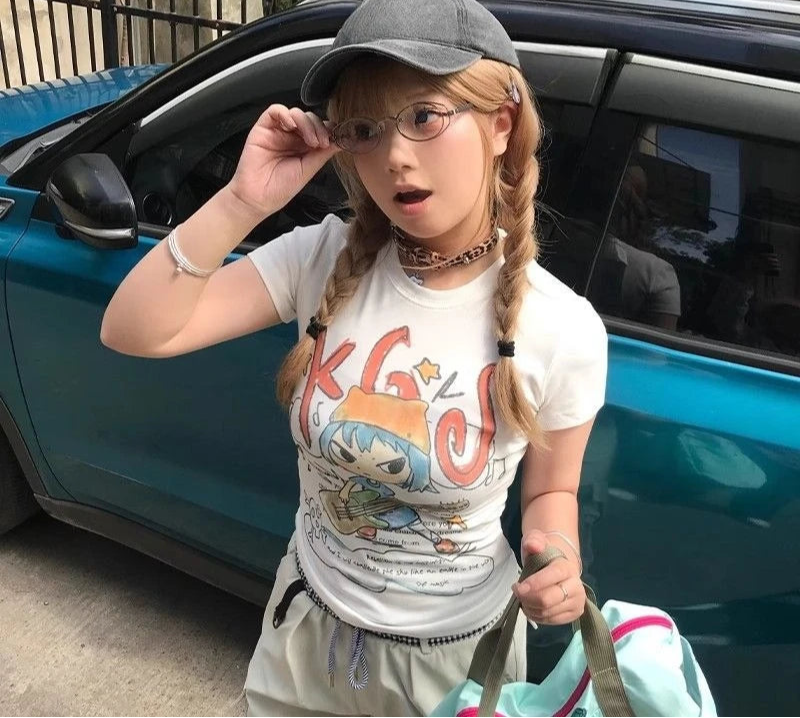 Lunivop Sexy T Shirts Women Cartoon Printed Short Sleeve Slim Y2k Crop Tops Summer Fashion Stretch Female Tshirt Casual
