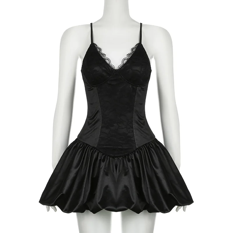 Lunivop Sexy V-Neck Bud Suspender Dress For Women Solid Lace Patchwork Sleeveless High Waisted Backless Slim Fit Mini Dresses New