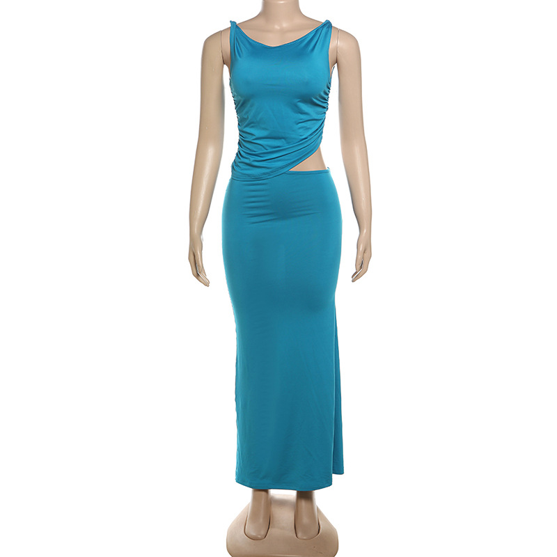 Lunivop Sexy Women Dress Skirt Summer Club Two Piece Set Outfits Fashion Summer Sleeveless Crop Tops Bodycon Long Skirt Suit