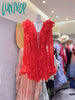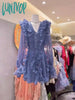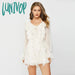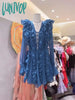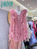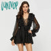 Lunivop Sheer Lace Mesh Dress Women Fashion Deep V Neck Bandage Ruffle Oversized Shirt Dress Femme Elegant Sexy Cover-up Woman