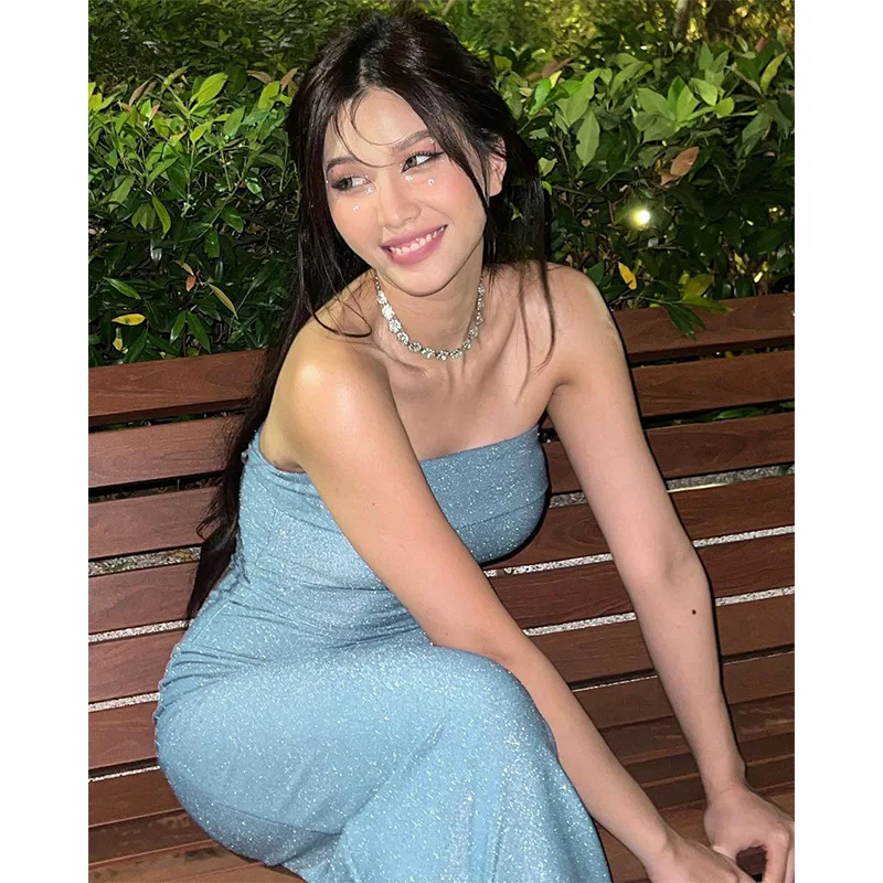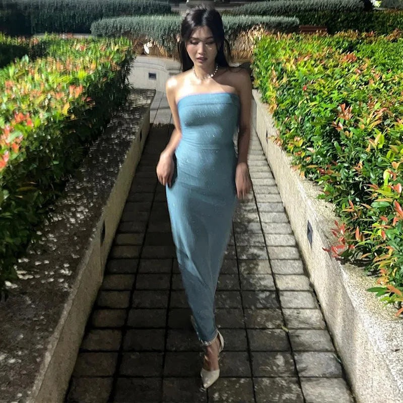 Lunivop Shining Glitter Elegsnt Y2K Strapless Solid Women'S Dress 2024 Summer Evening Party Lady Casual Korean Clothing