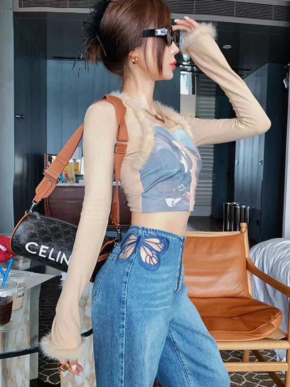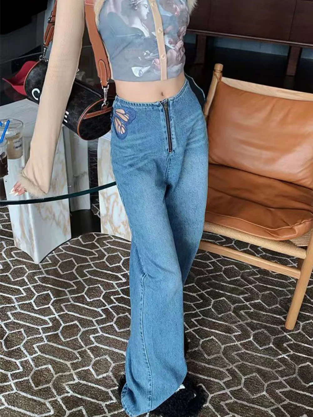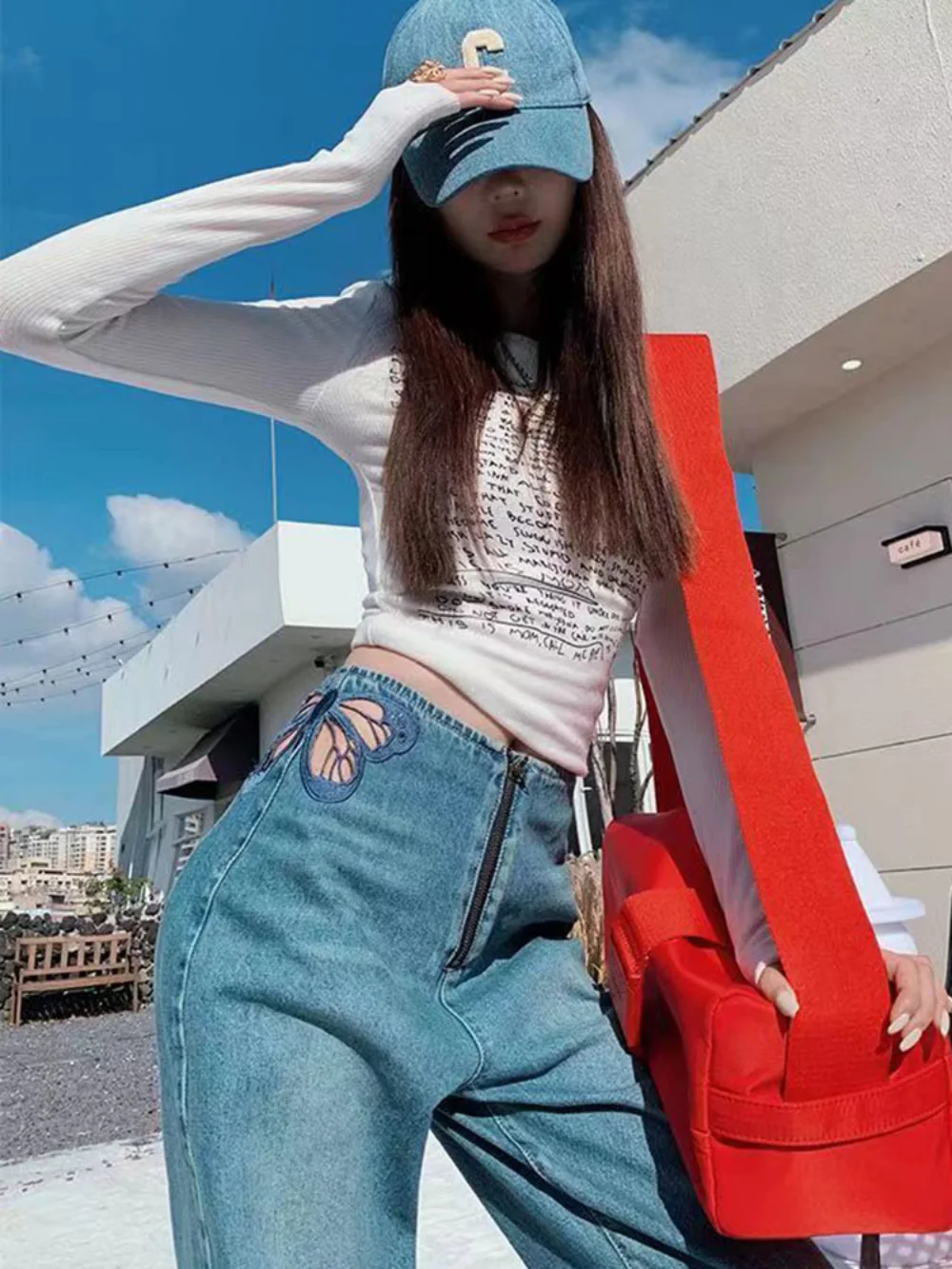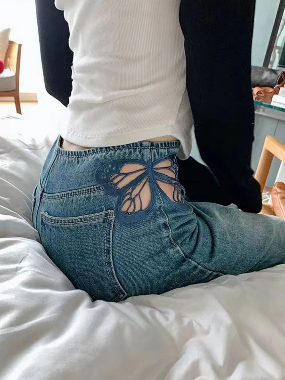 Lunivop Side Butterfly Jeans Women Sexy Hollow Embroidery Long Pants Women's All Match Casual Denim Pant Female Summer