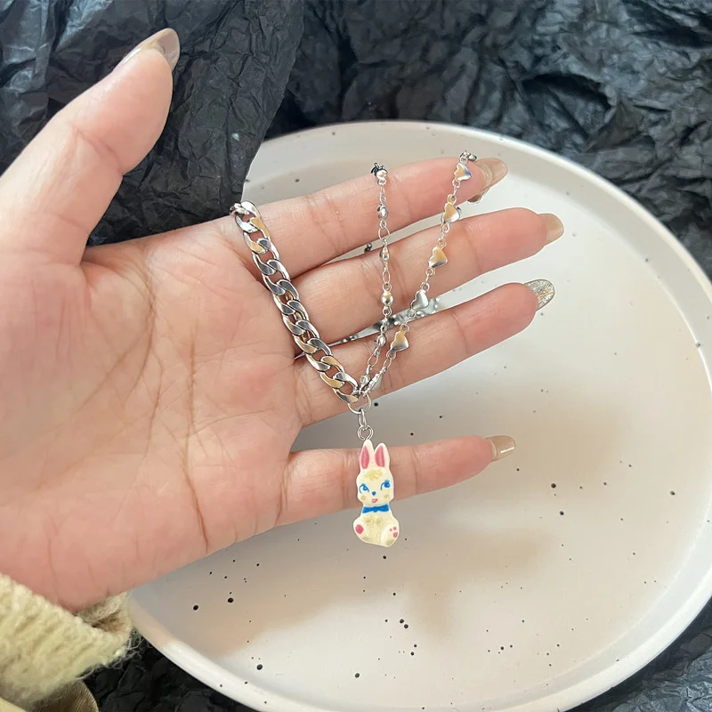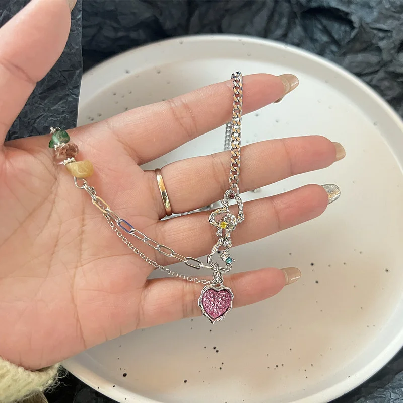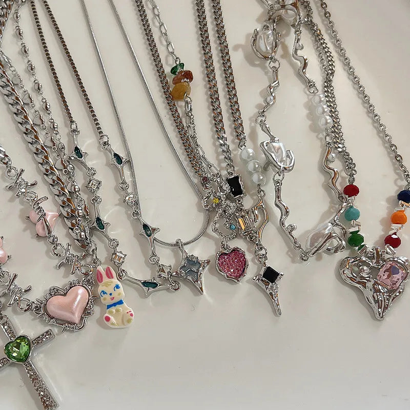 Lunivop Silver Color Y2K Pendant Necklaces Fashion Cross Shiny Zircon Crystal Heart Drop Necklace for Women Asymmetrical Jewelry Gifts
