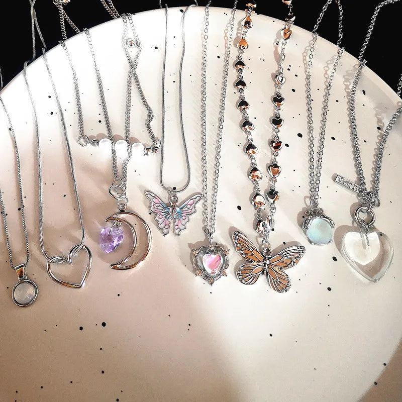 Lunivop Simple Chain Butterfly Heart Pendant Necklace for Women's Party Wedding Jewelry Gifts Music Festival