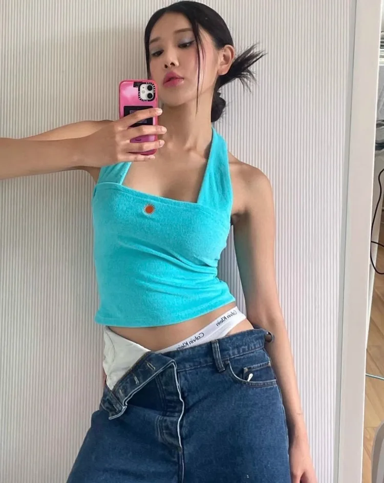 Lunivop Simple Sweet Embroidery Cotton Tank Top Y2k E-Girl Sexy Slim Fit Halter Camisole Tops 2024 Summer New Blue Vest for Women