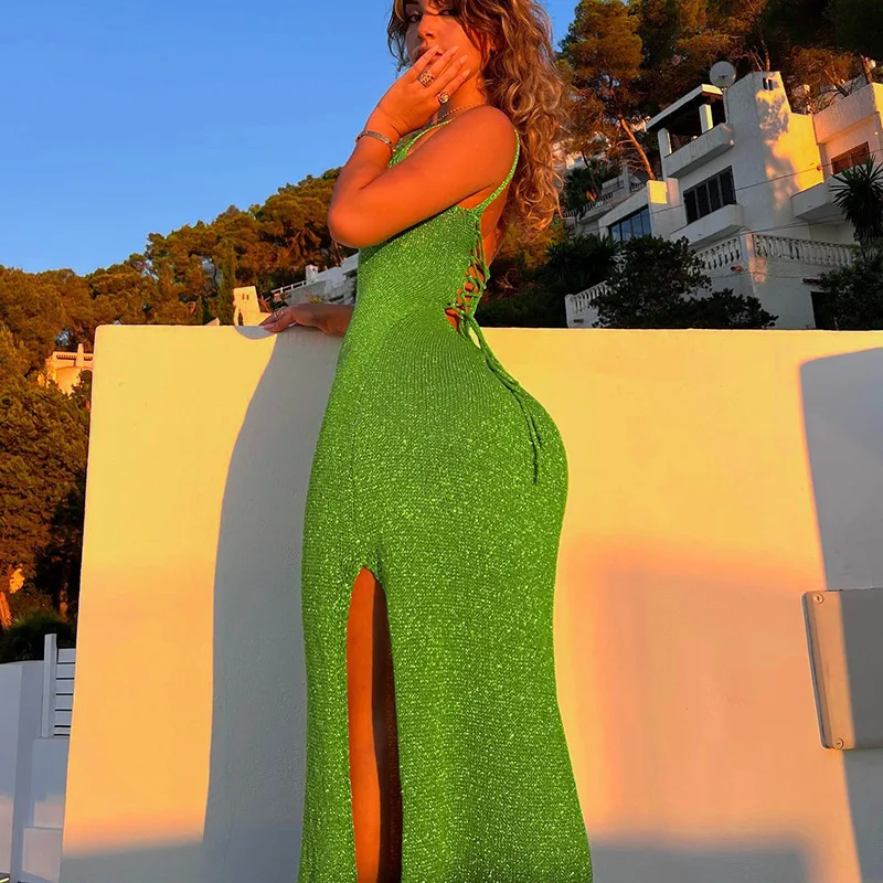 Lunivop Sleeveless Knitting Lace Up Back Slit Long Elegant Dress 2024 Sumer Streetwear Fashion Party Elegant Casual Dresses