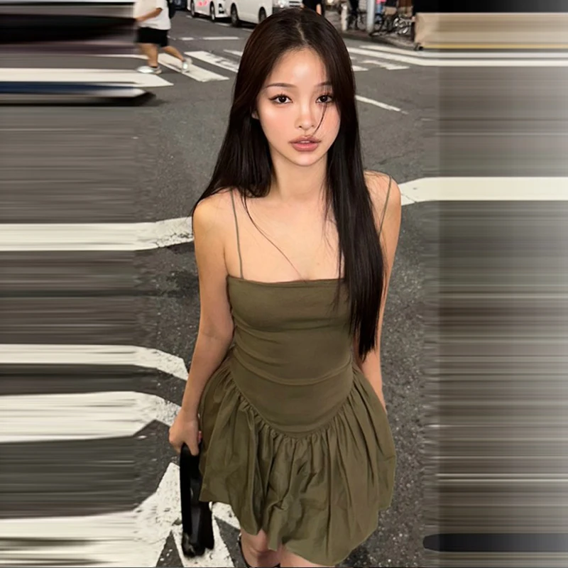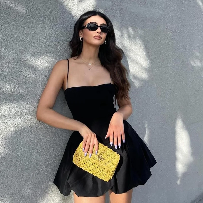 Lunivop Sleeveless Ruffles Short Women'S Dresses Elegant Evening Party Fashion 2024 Solid Bud Bubble Dress Y2K Korean Clothing