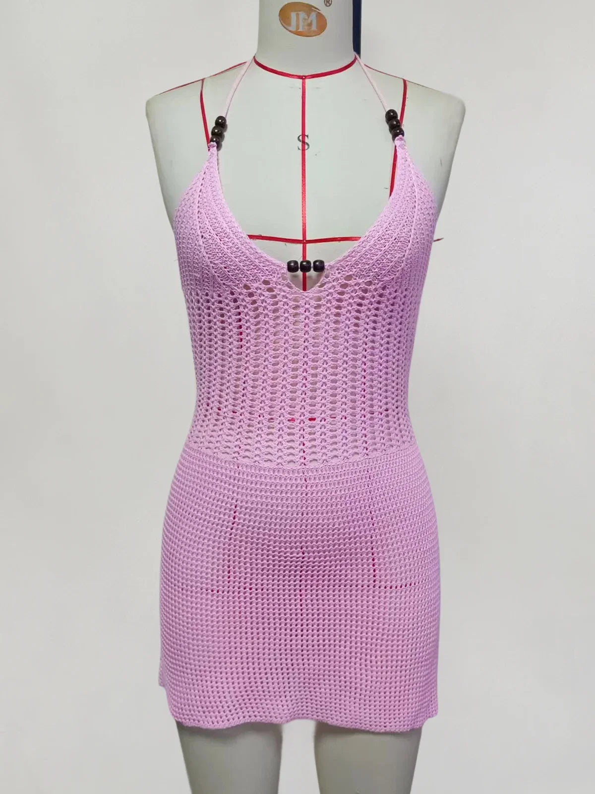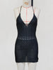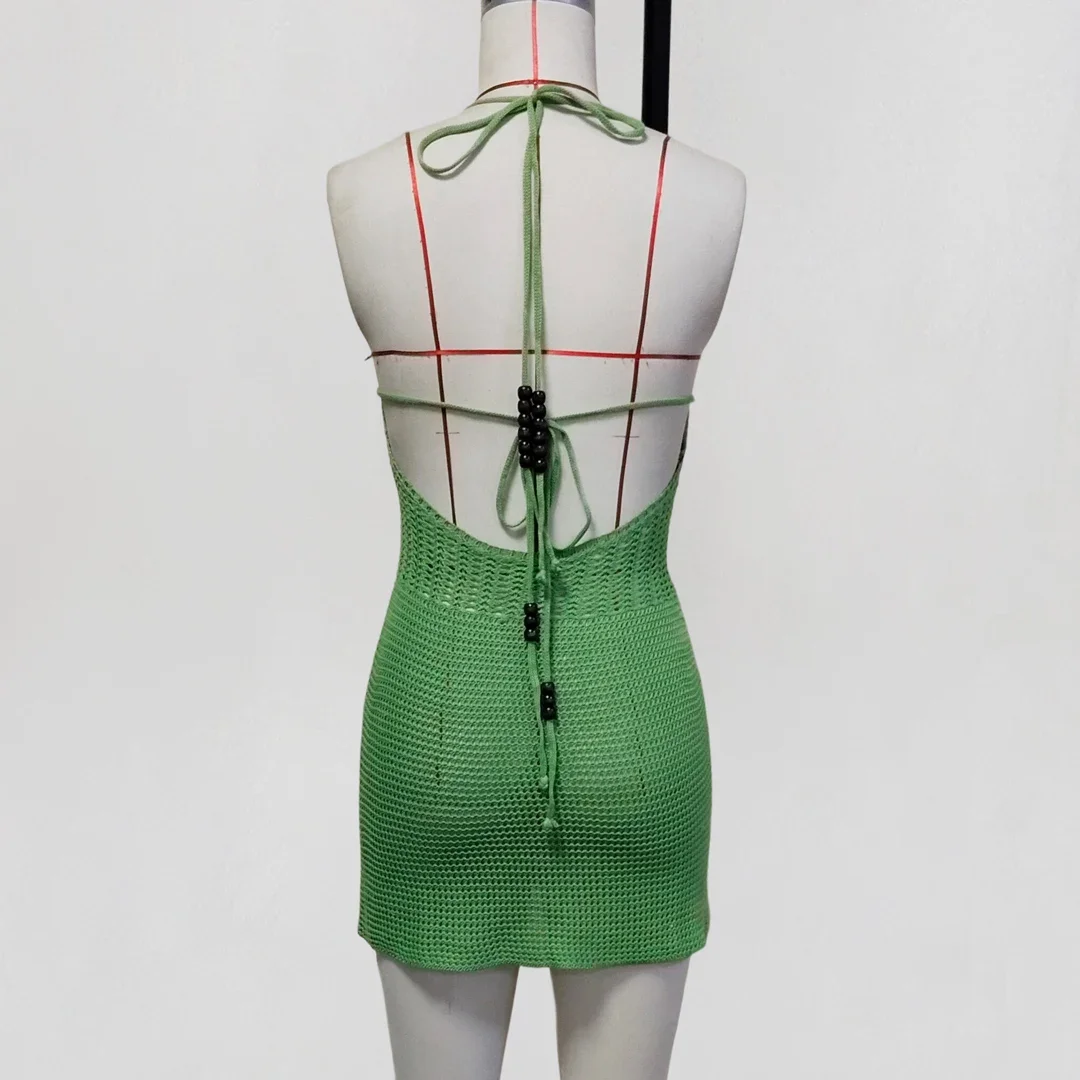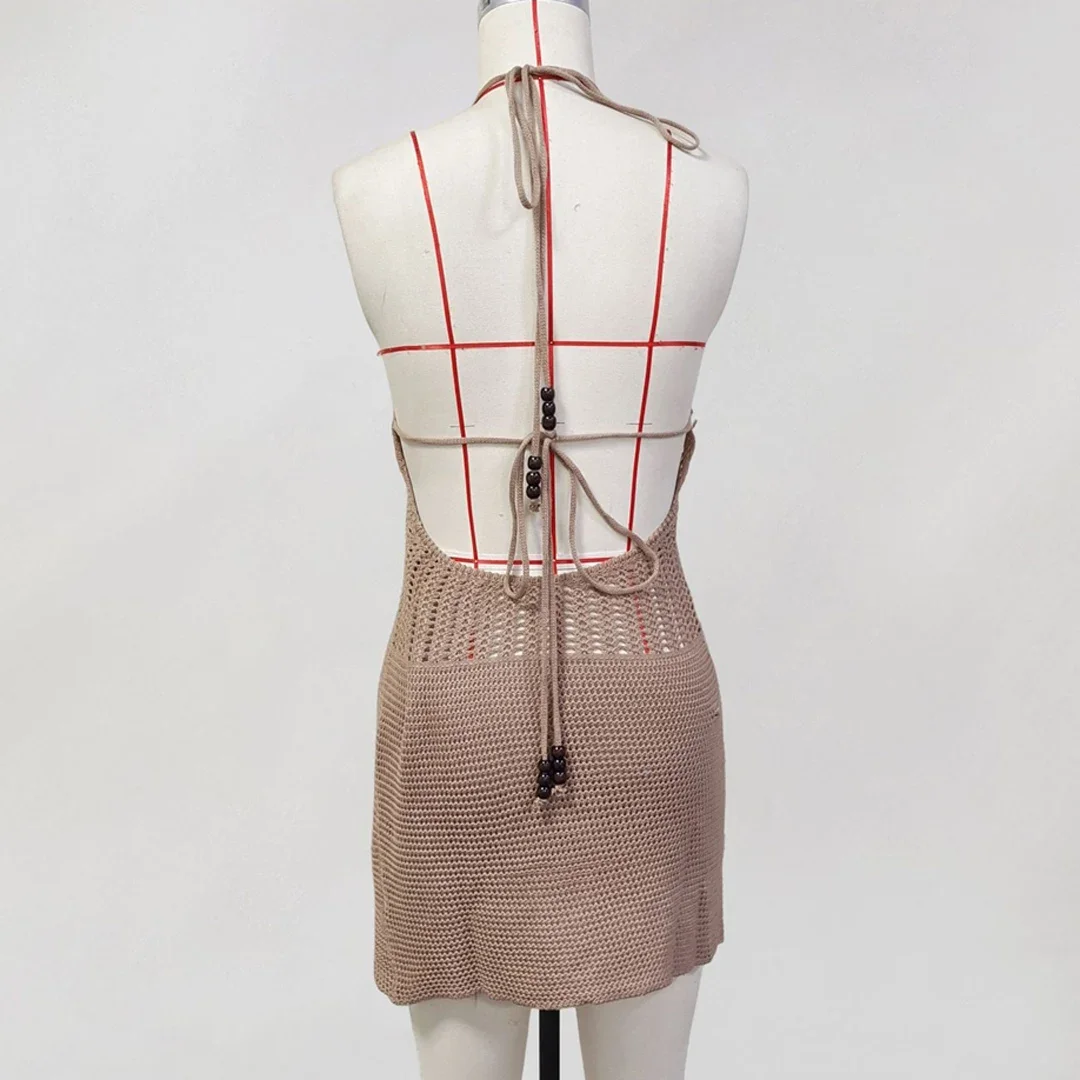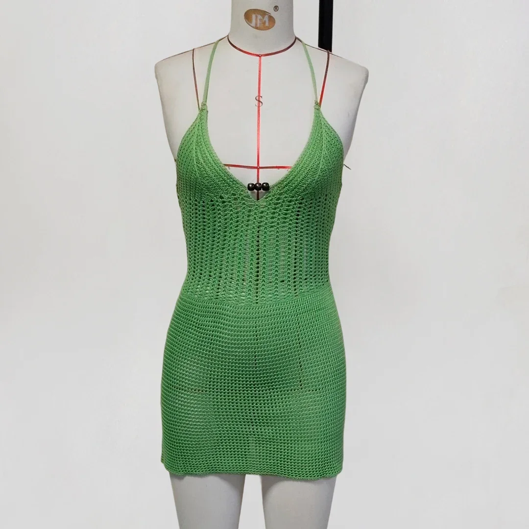 Lunivop Slim Bodycon Crochet Knitted Beach Dress Women Halter Mini Dress Summer Hollow Out V Neck Backless Sexy Party Dresses