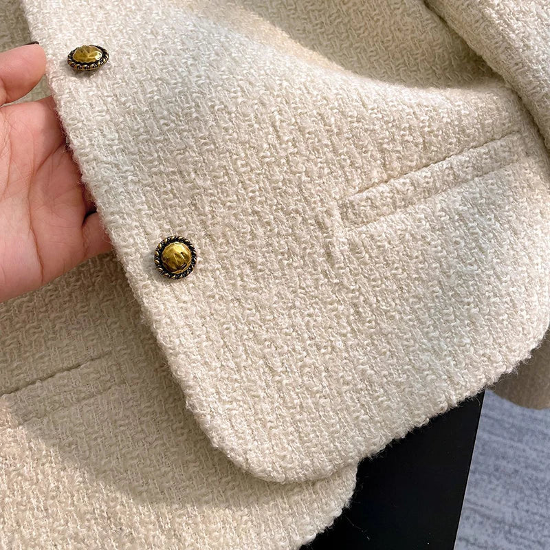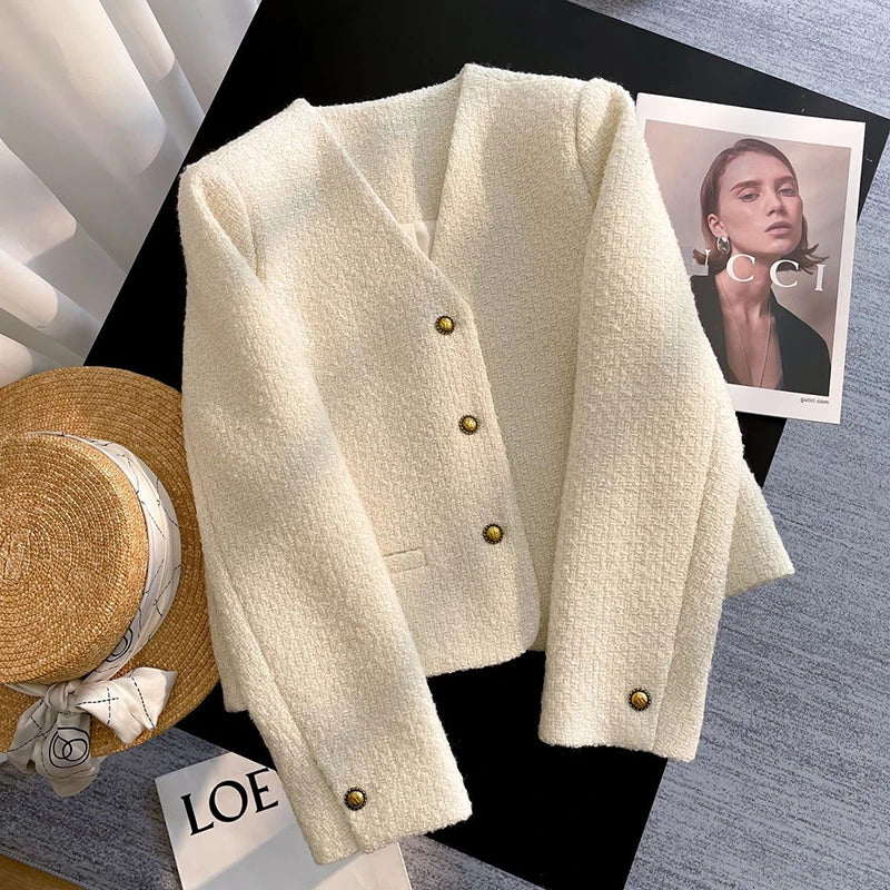Lunivop Slim Elegant Tweed Jacket Women Vintage Long Sleeve Sweet Short Coat French Casual Vintage Lady V Neck Single Breasted Tops