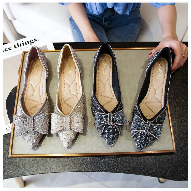 Lunivop Slip on Single Shoes Summer Flat New Butterfly Knot Rhinestone Shallow Mouth Plus Size Women's Shoe 41-43 Sapatos Femininos