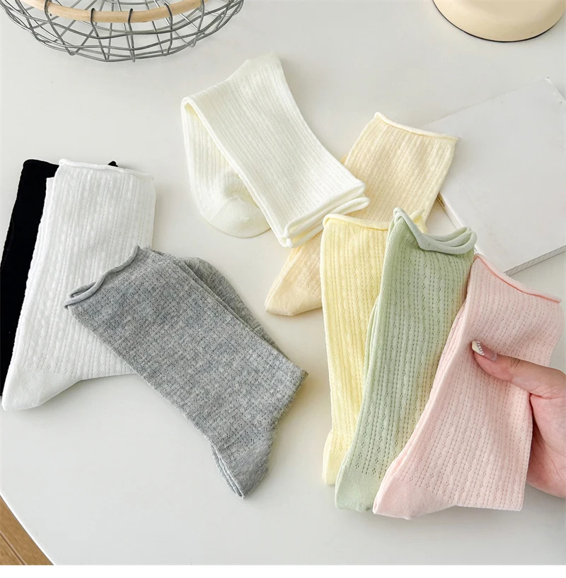 Lunivop Socks For Women Thin Summer New Candy Color Hollow Out Loose Socks Women's Casual Basic Sweet Girls Fashion Long Socks Comfort