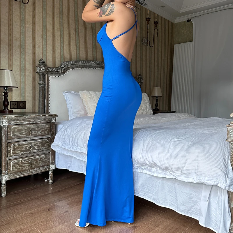 Lunivop Solid Basic Backless Prom Long Dress Elegant Evening Fashion Party Apparel Summer Sleeveless Women Wholeasle Clothes
