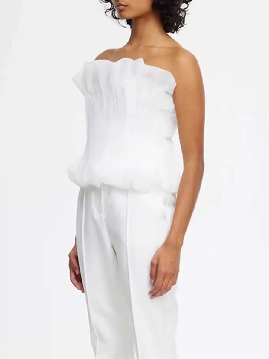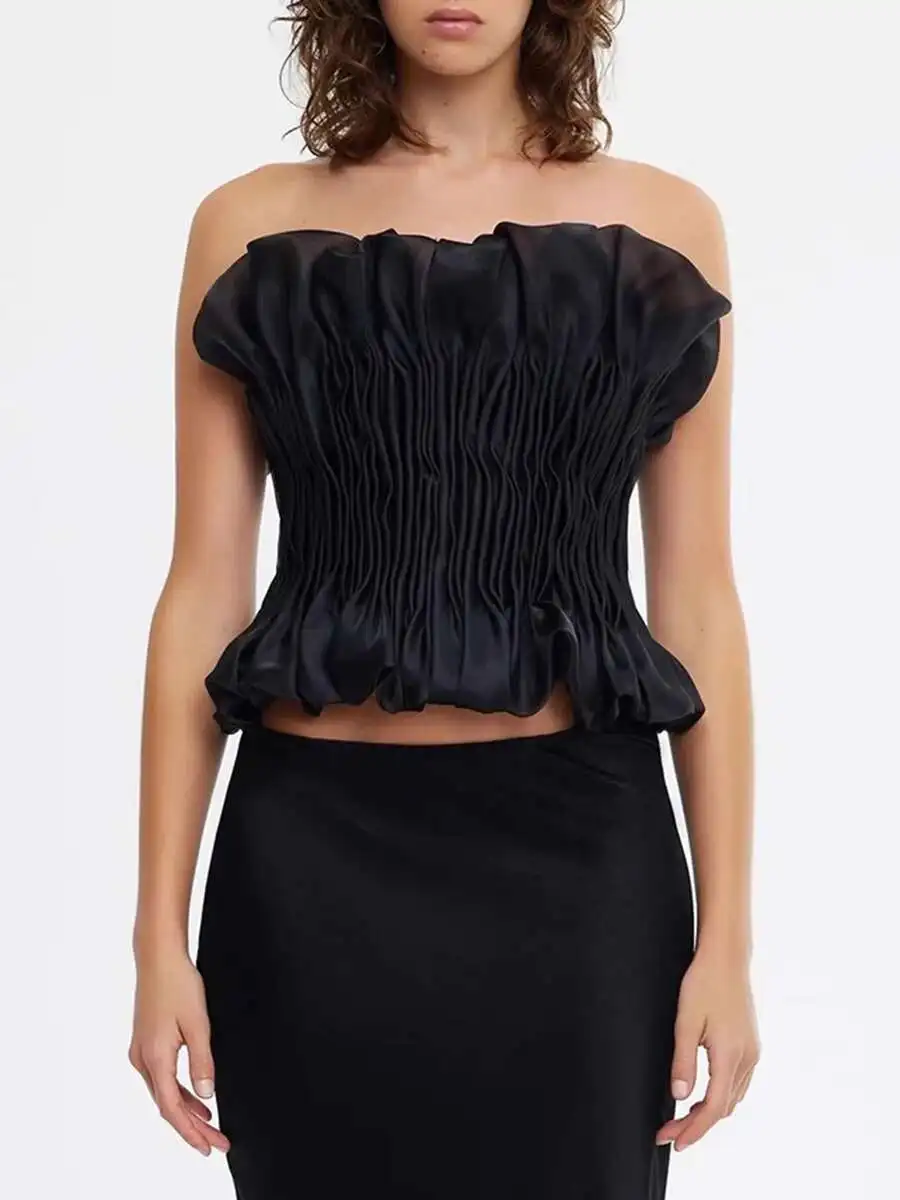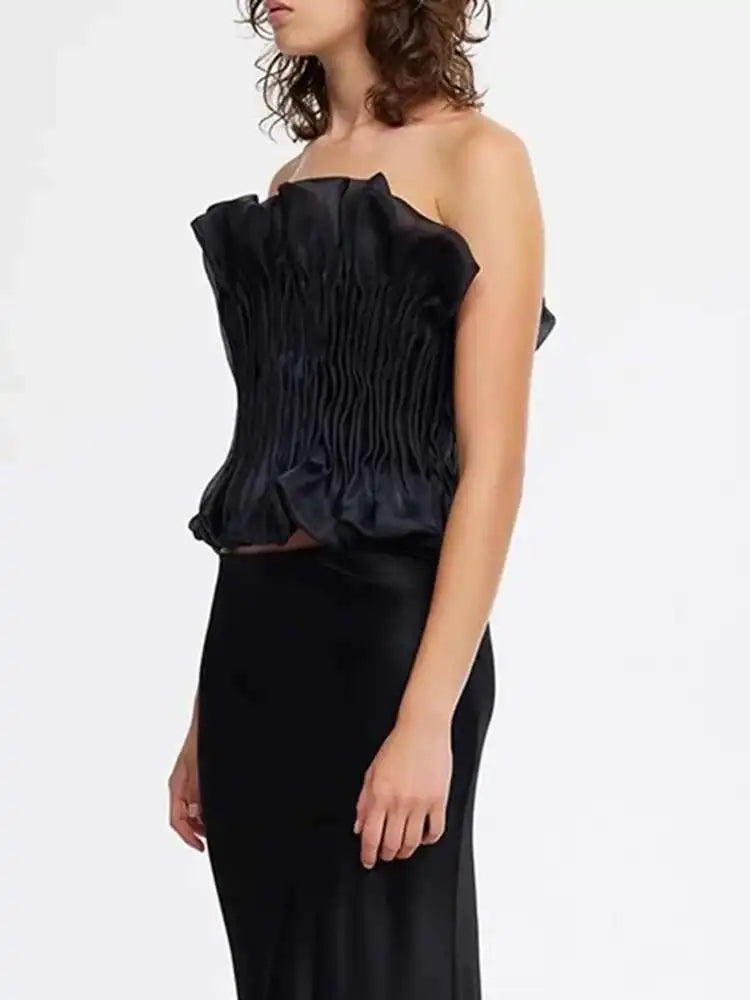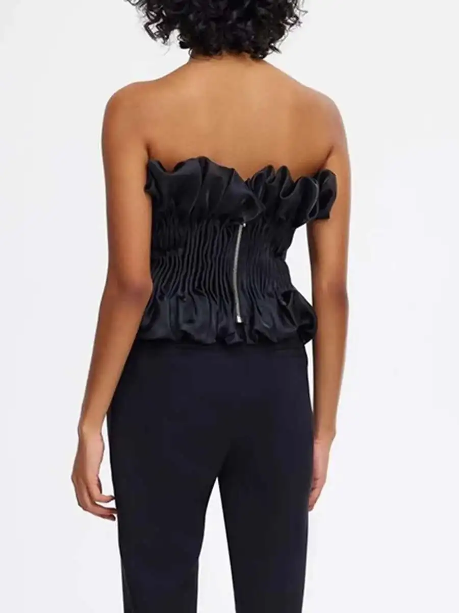 Lunivop Solid Designer Women's Tank Tops Sleeveless Shoulder Tuning Splicing Work Elastic Fold Short Tube Top Female New