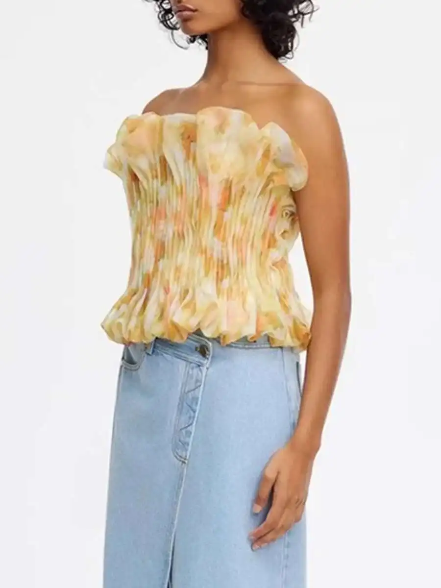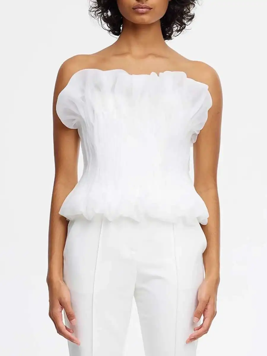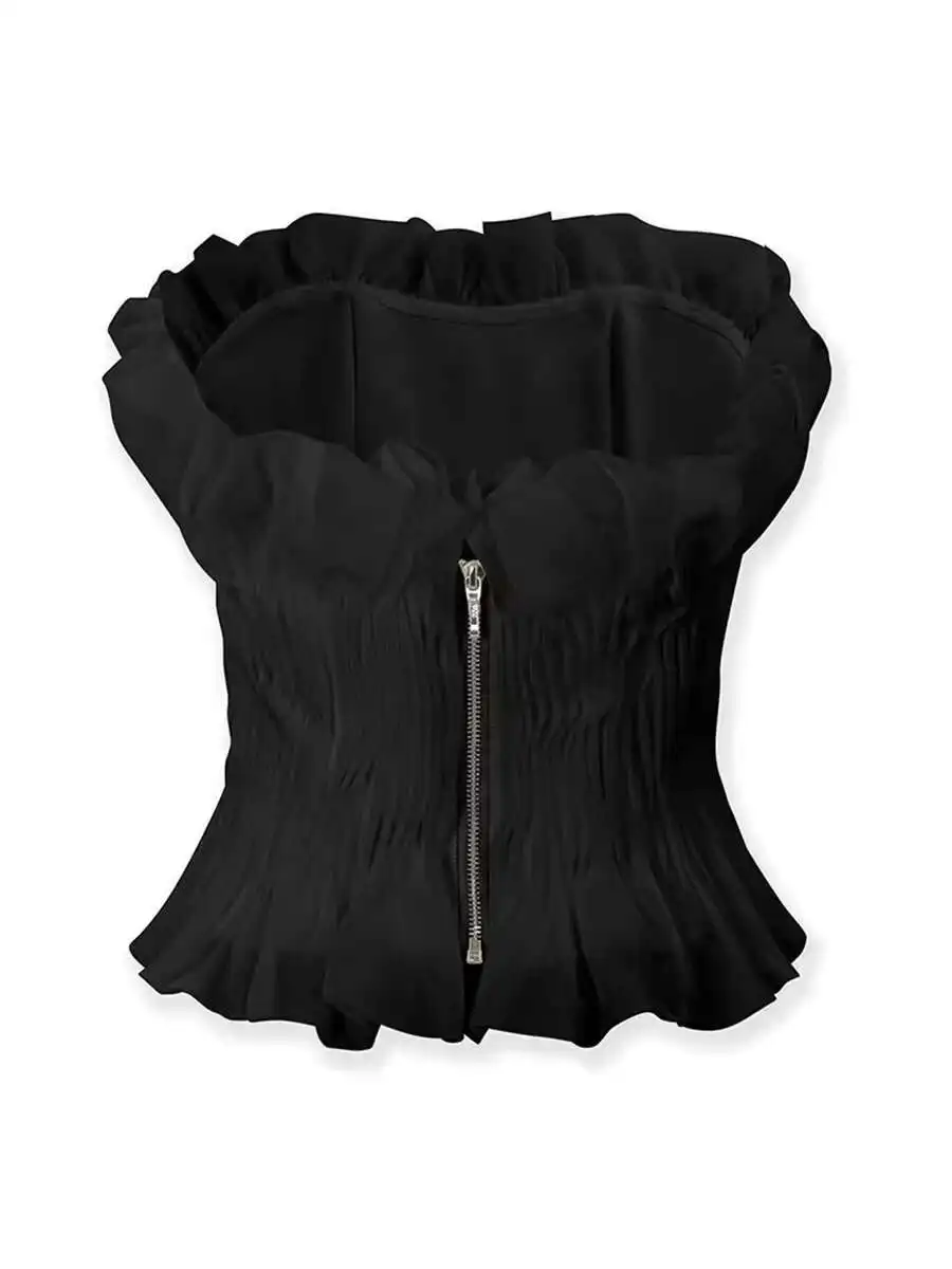 Lunivop Solid Designer Women's Tank Tops Sleeveless Shoulder Tuning Splicing Work Elastic Fold Short Tube Top Female New