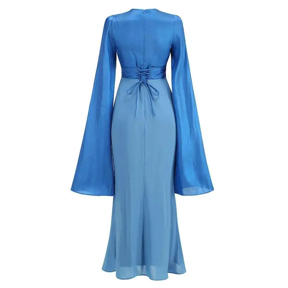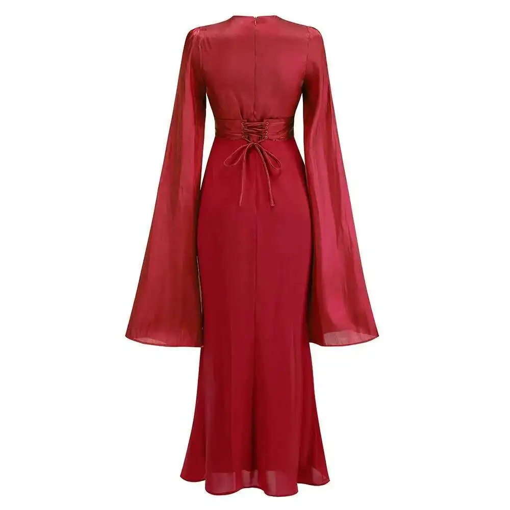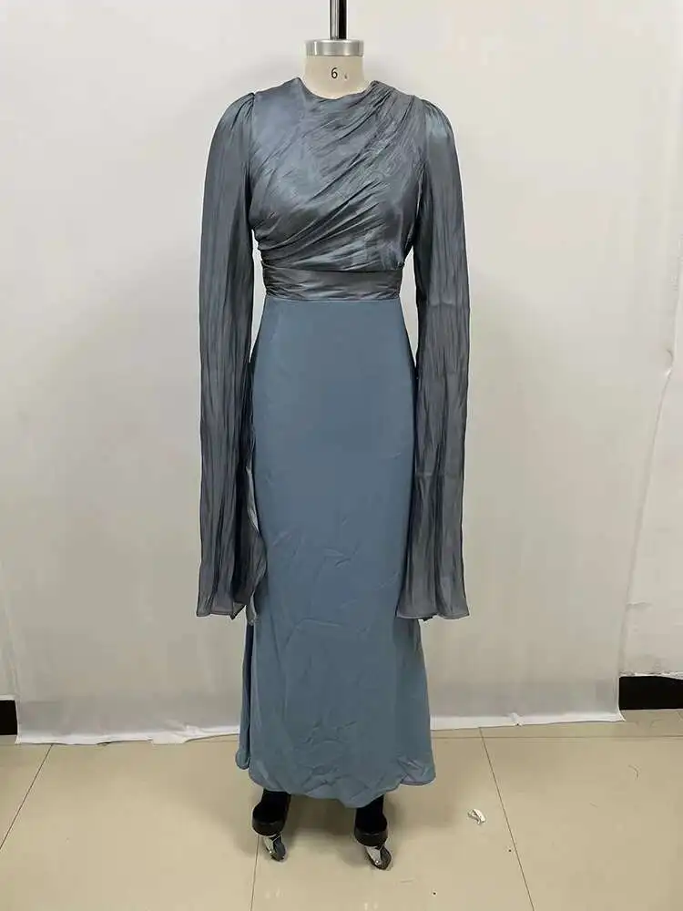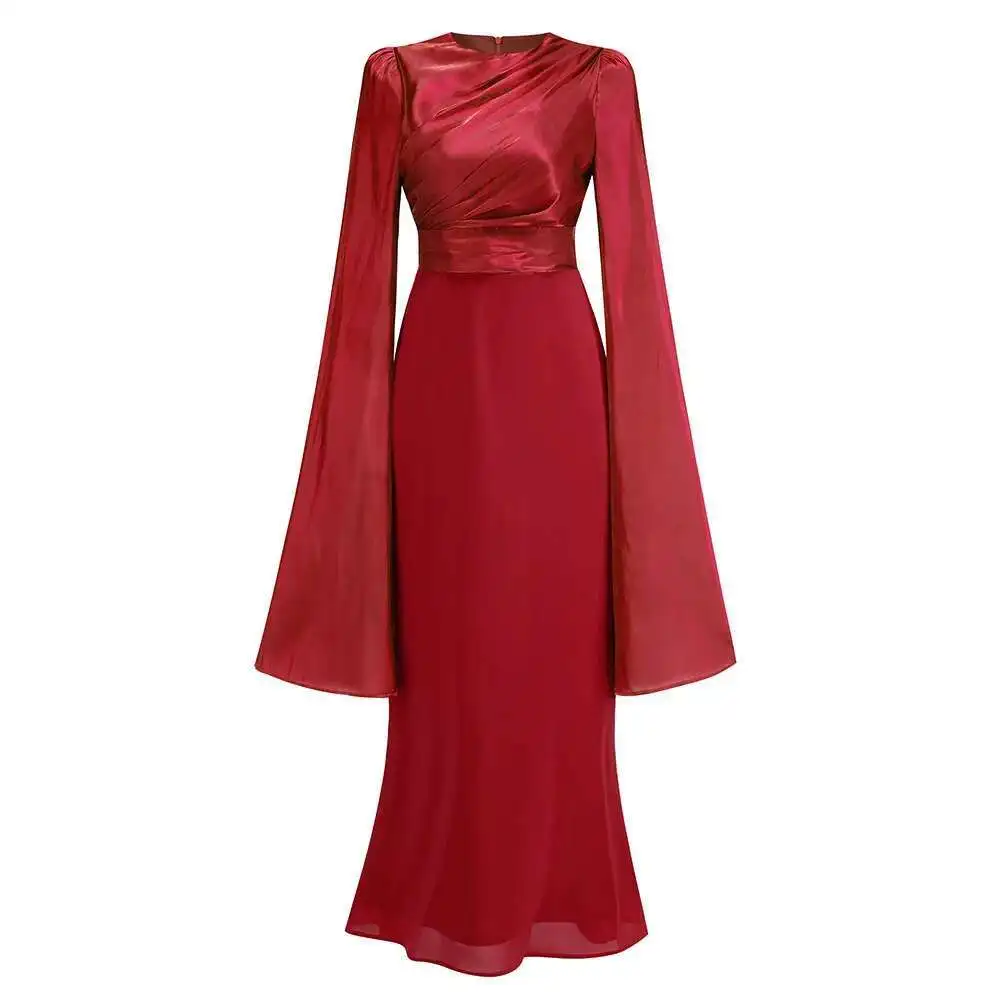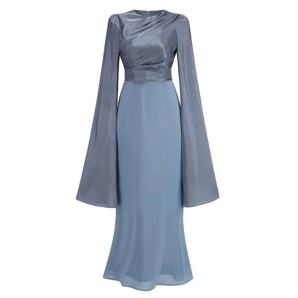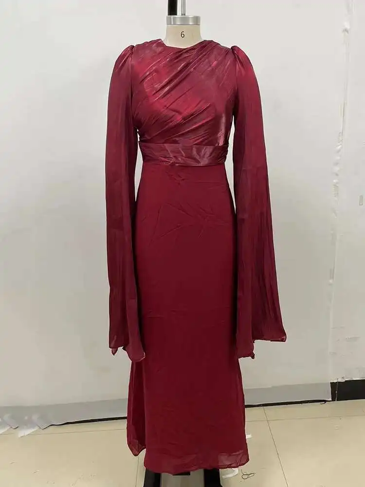Lunivop Solid Flare Sleeve Women's Long Dresses Round Neck High Waist Slimming Elegant Dress Female Autumn 2025 New 3WM2174