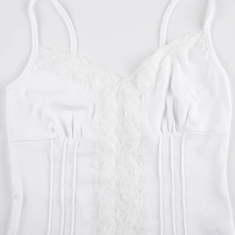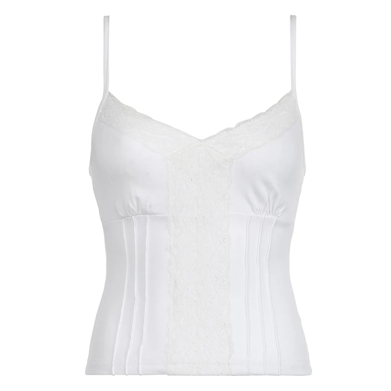 Lunivop Solid Lace Stitching Crop Top Women Casual Summer Skinny Basic Tees Y2k Harajuku Casual Camisole Ladies Fashion Clothing