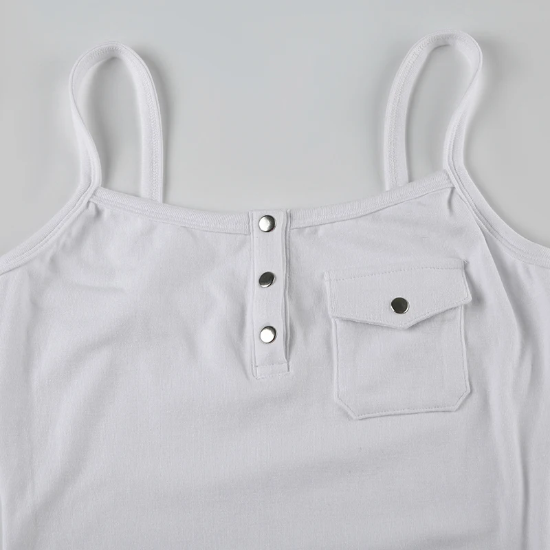 Lunivop Solid Skinny Cargo Pocket Crop Top Sexy See Through White Camisole Women Basic Summer Strap Tees y2k Streetwear Clothing
